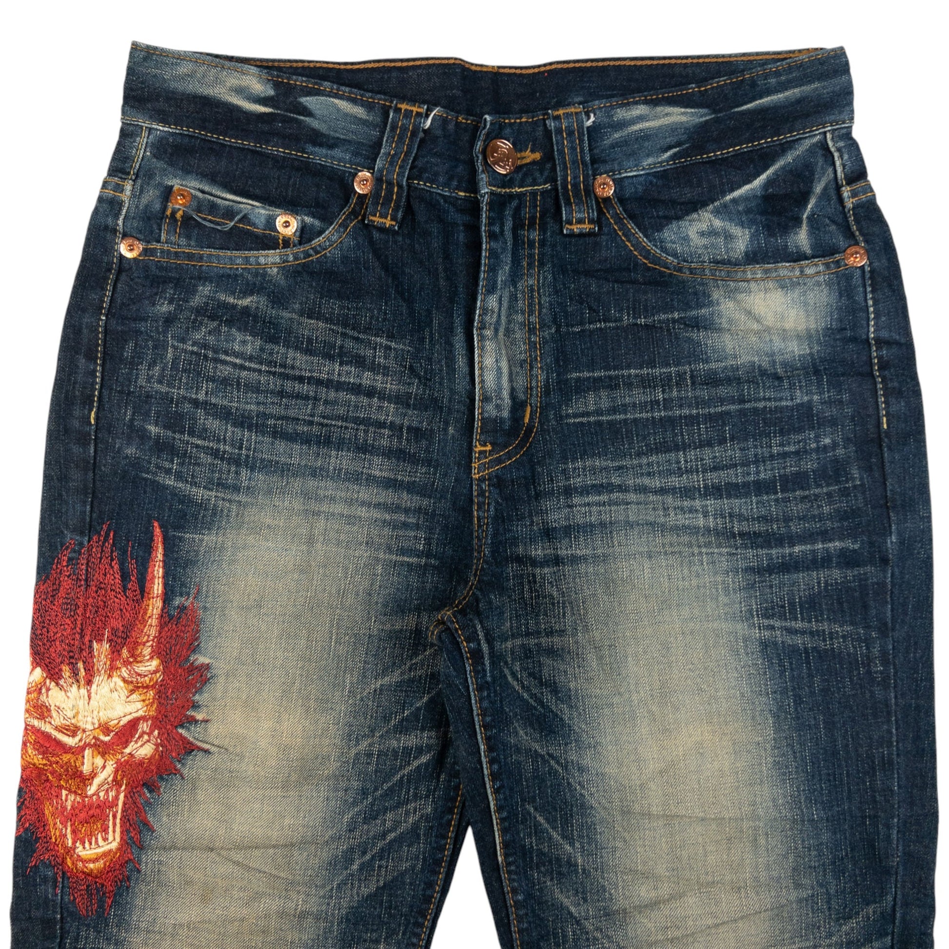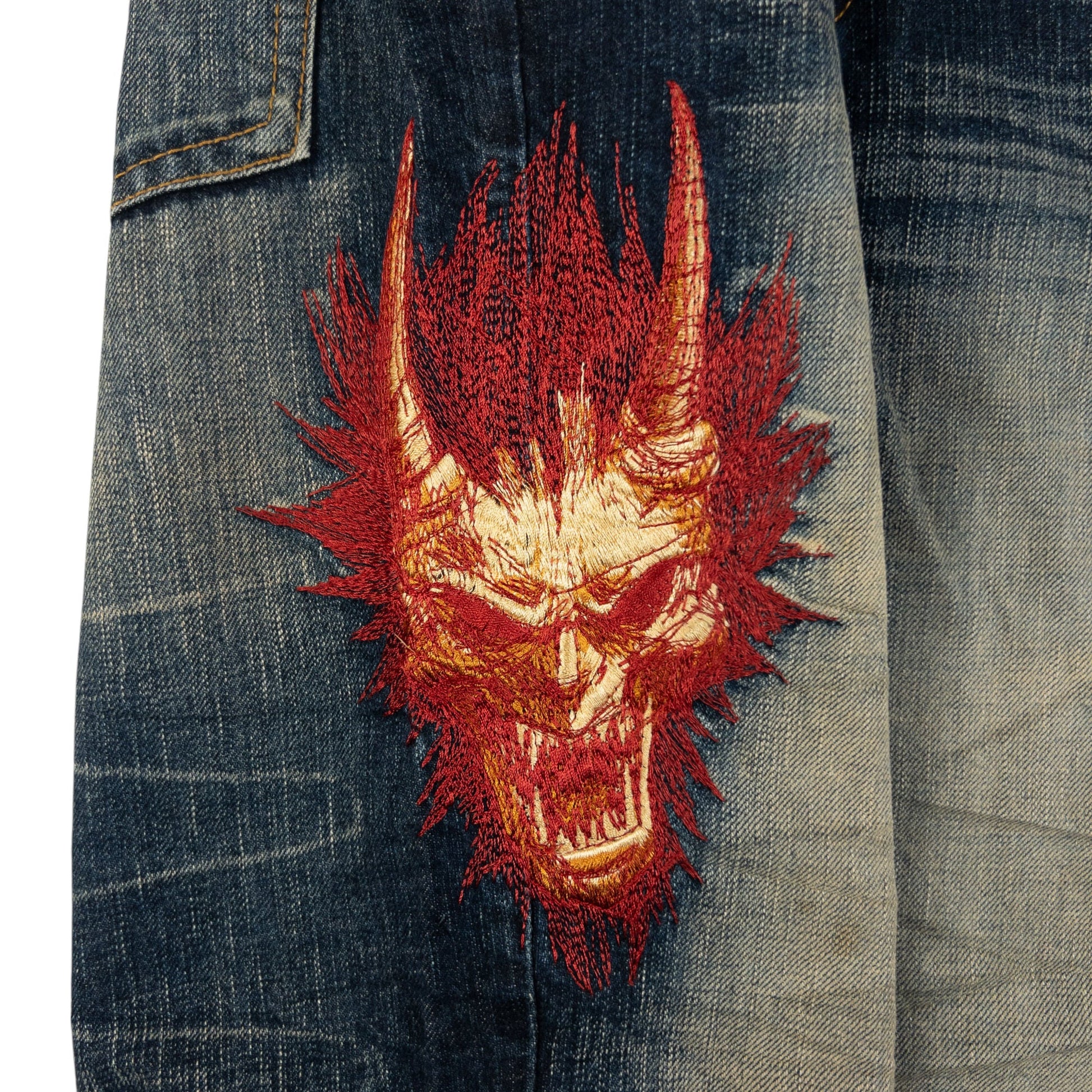 Vintage Oniarai Embroidered Monster Japanese Denim Jeans Size W31