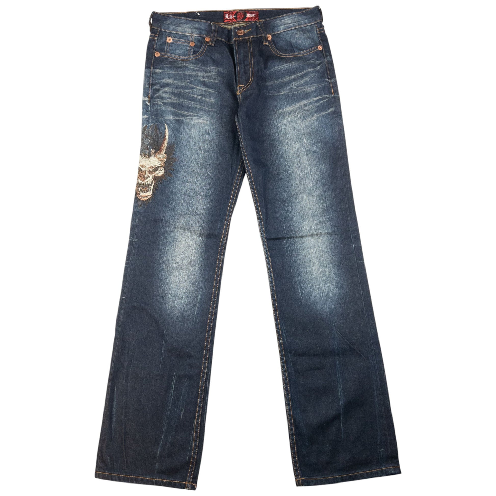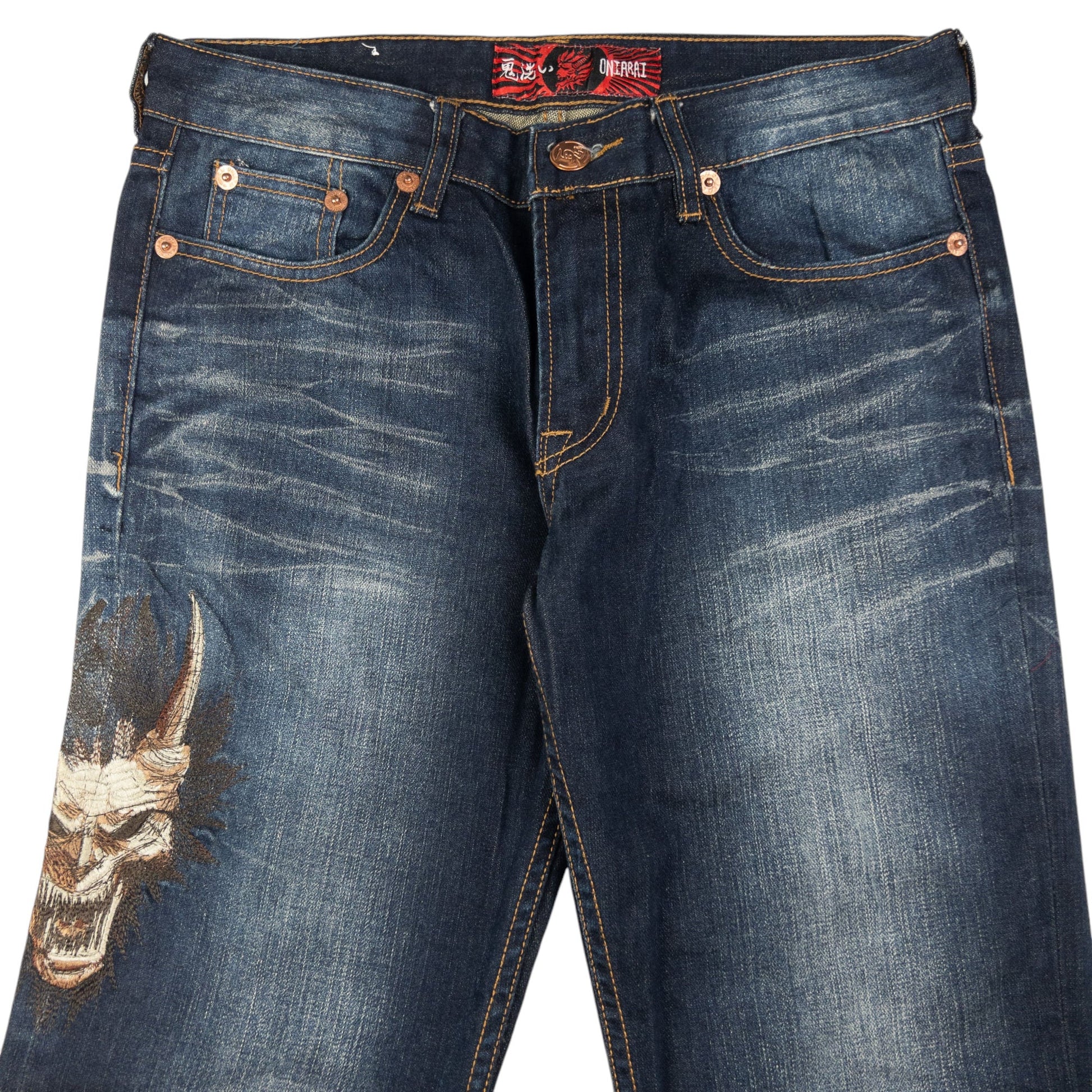 Vintage Oniarai Embroidered Monster Japanese Denim Jeans Size W31