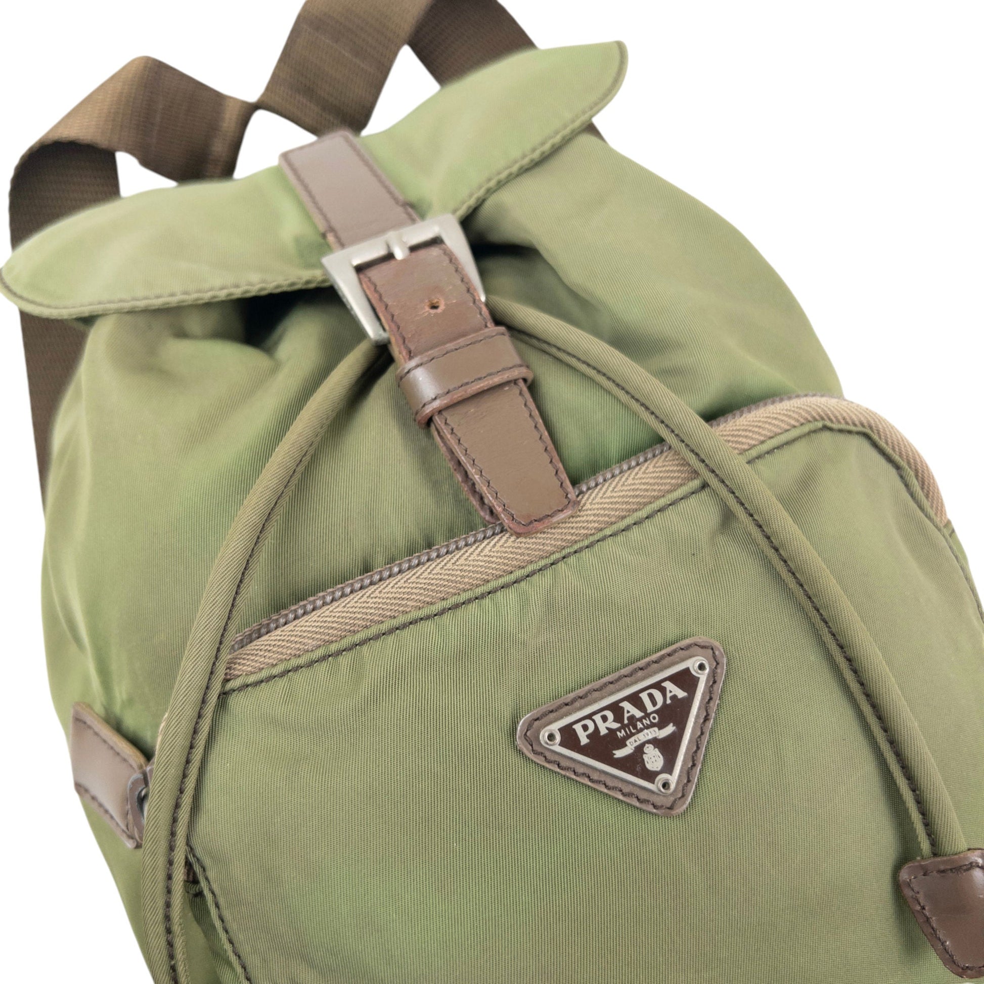 • Other info: Green colour, brown accent colour, prada symbole plate detail, drawstring closure, minor general wear as seen