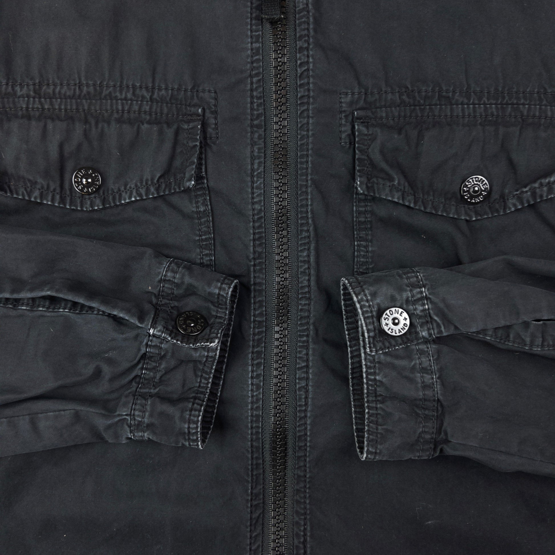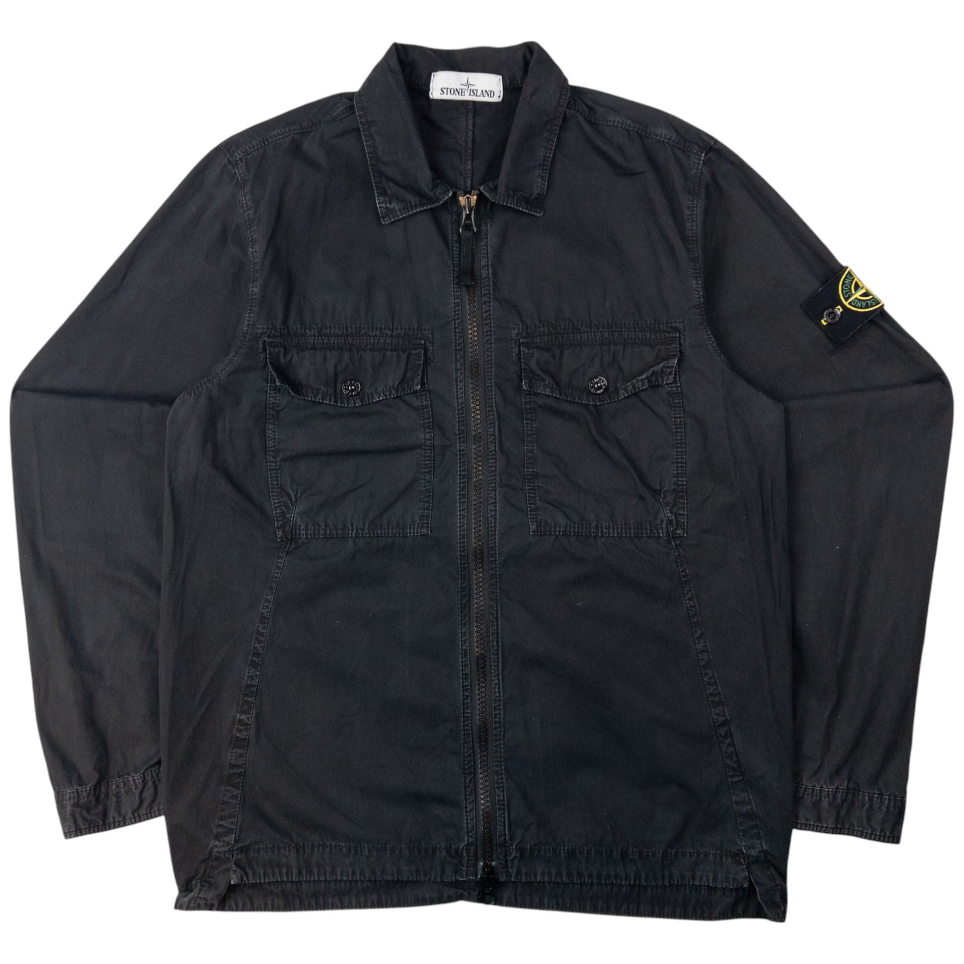 • Other info: Black colour, lightweight shacket feel, embroidered logo sleeve patch, embossed fastenings, fade and general wear as seen