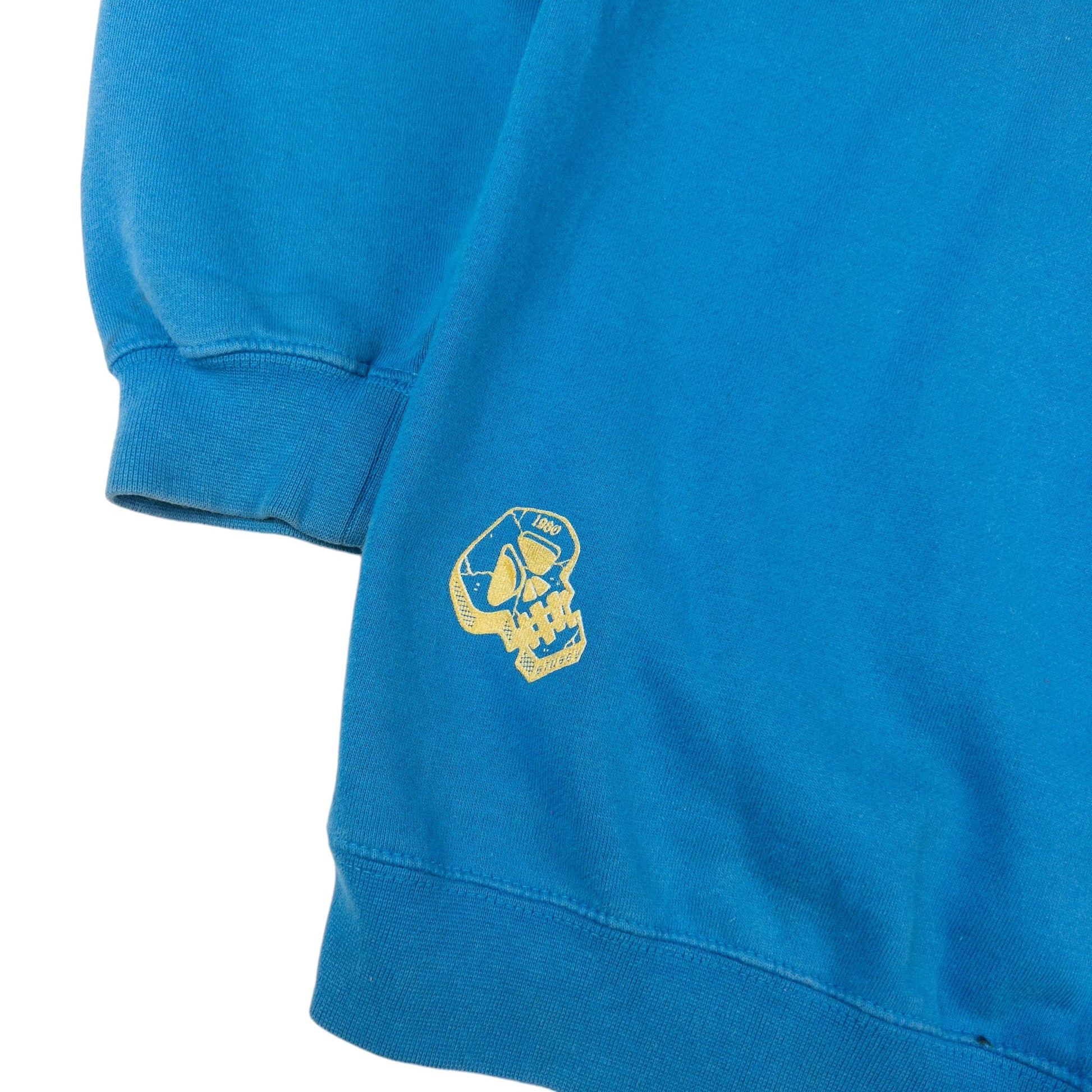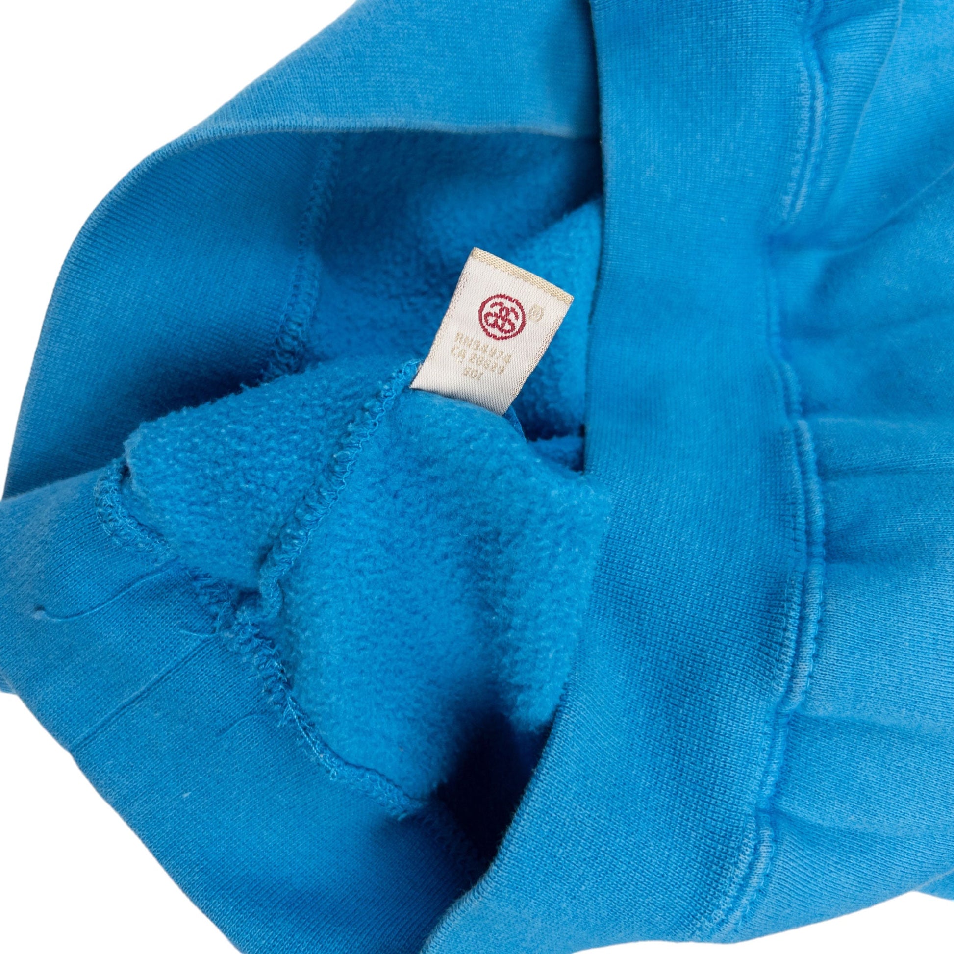 • Other info: Blue colour, contrast gold text graphic on front, drawstring hood feature, discolouration and signs of wear as shown