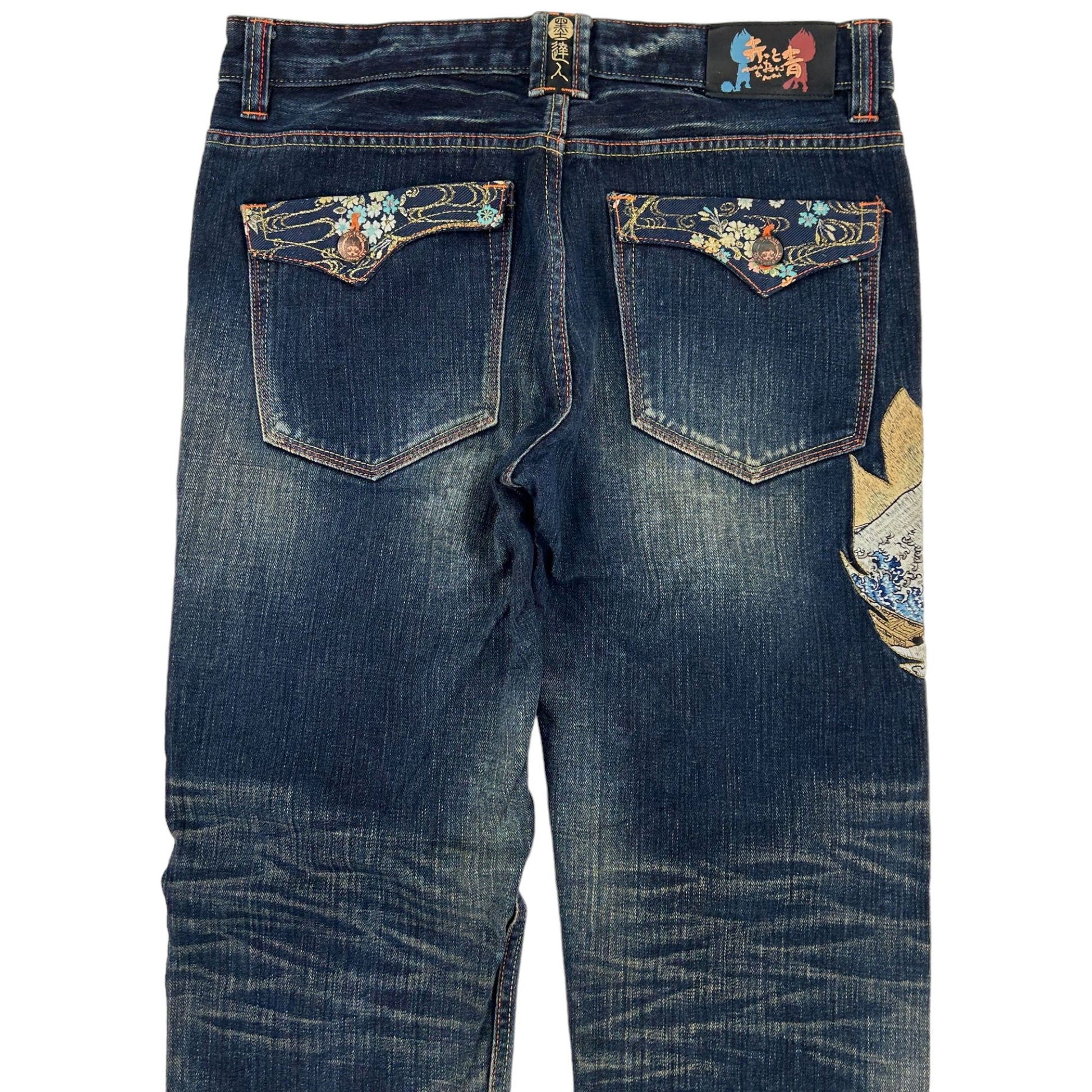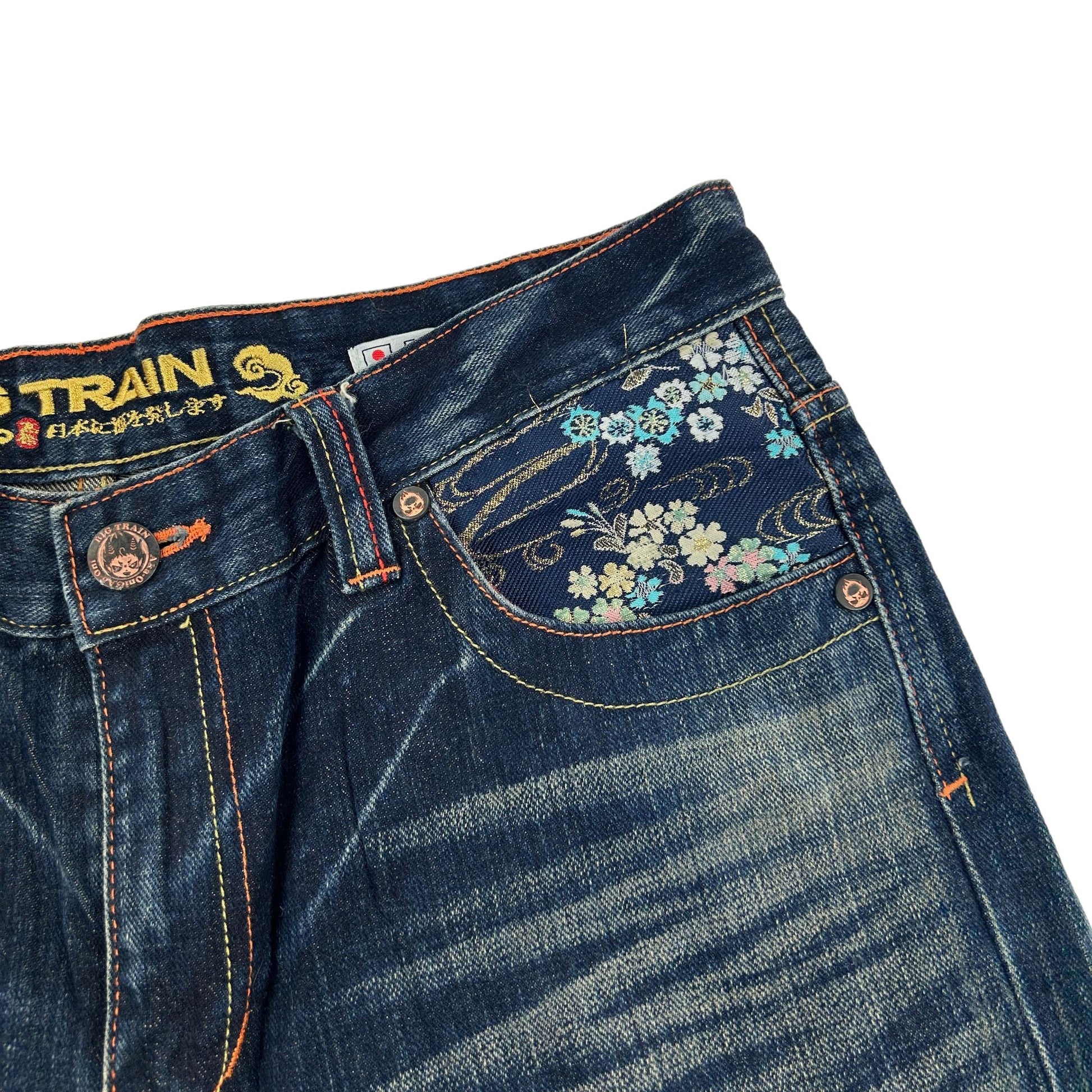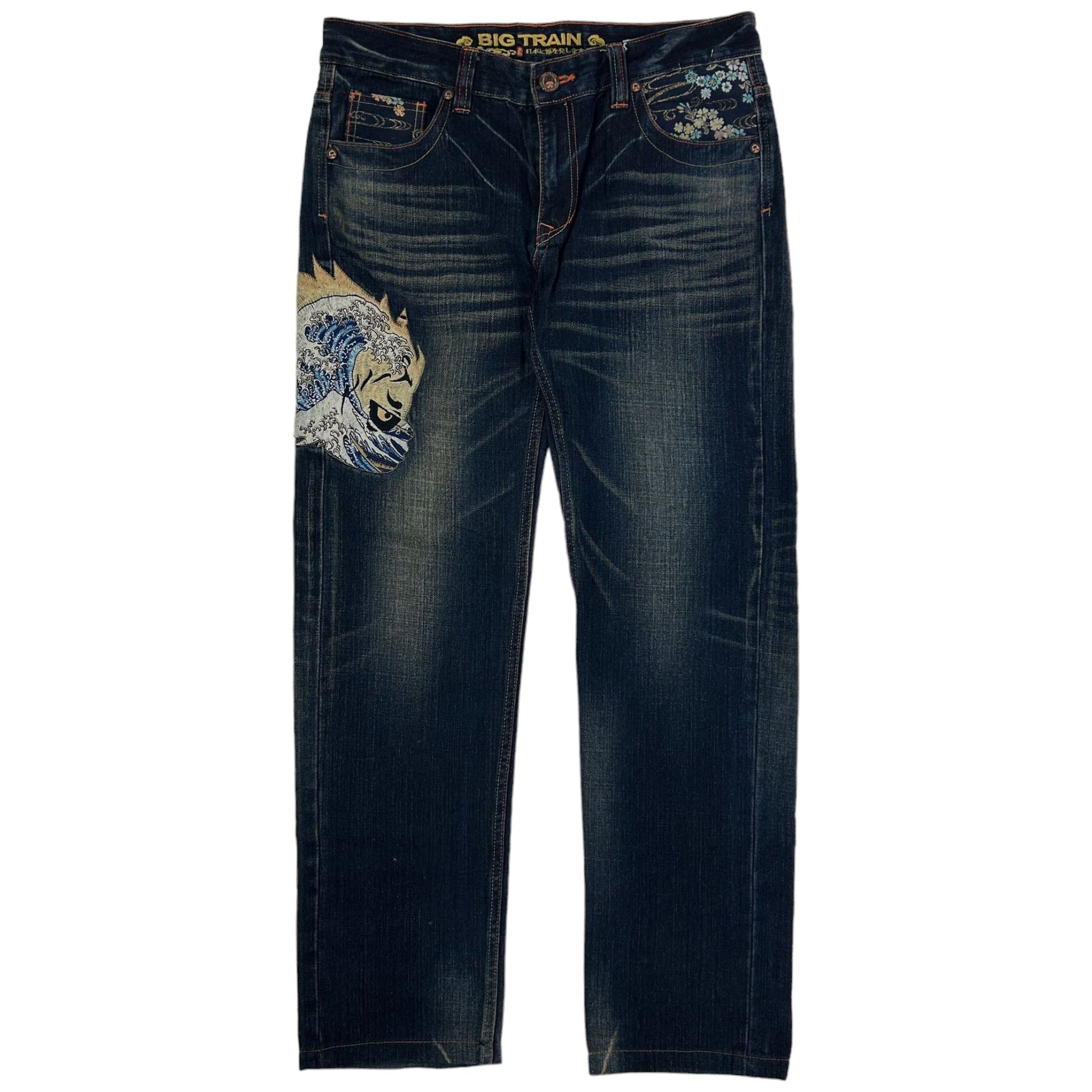 Vintage Wave Big Train Japanese Embroidered Denim Jeans Size W32