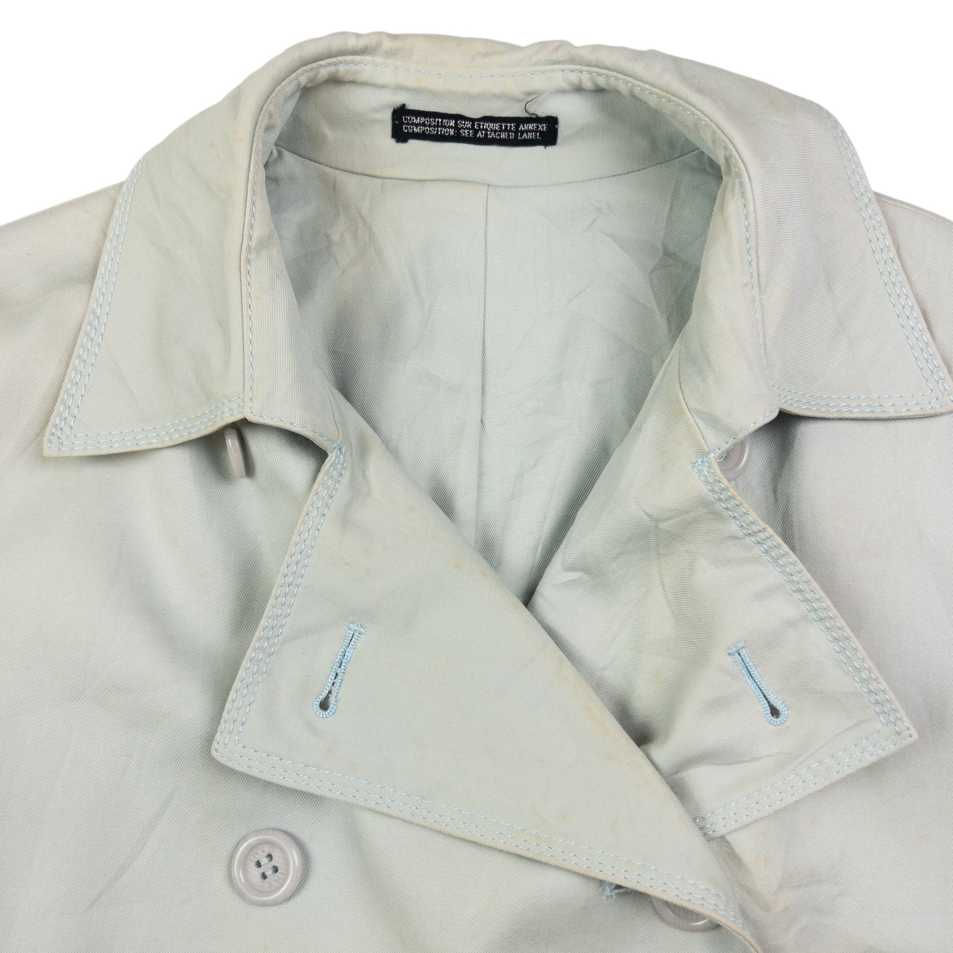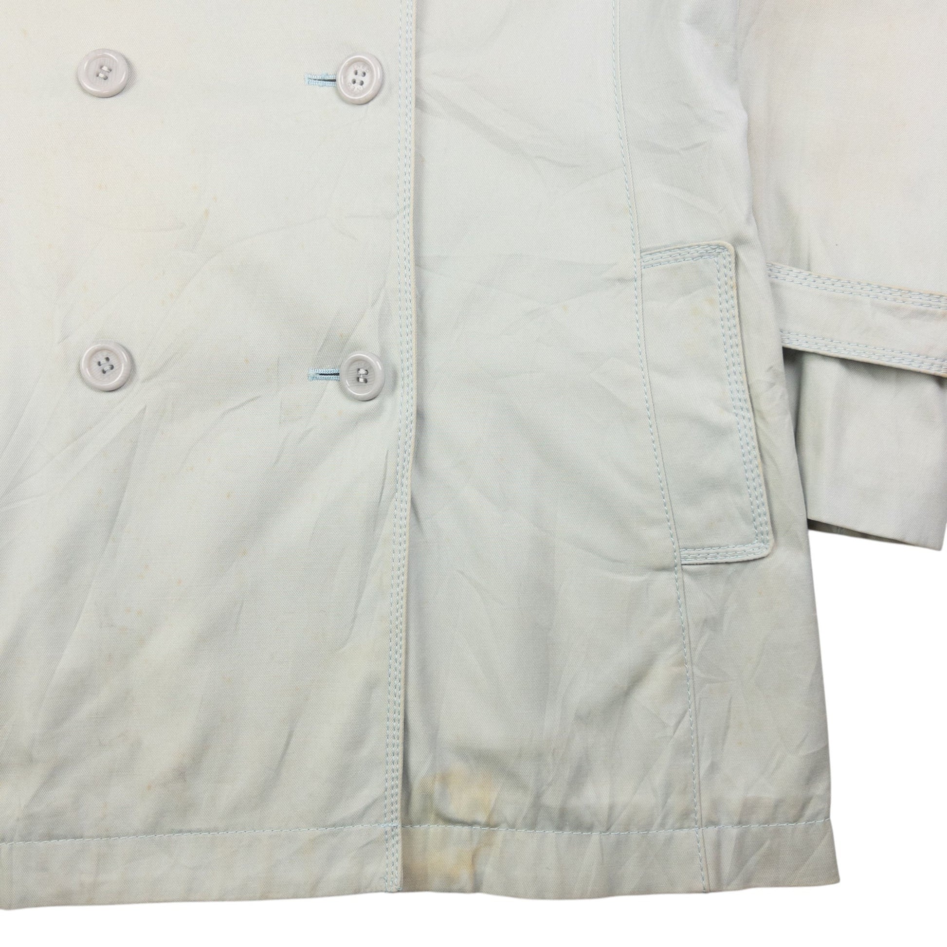 • Other info: Blue colour, trench coat style, marks and wear as shown, missing belt as seen