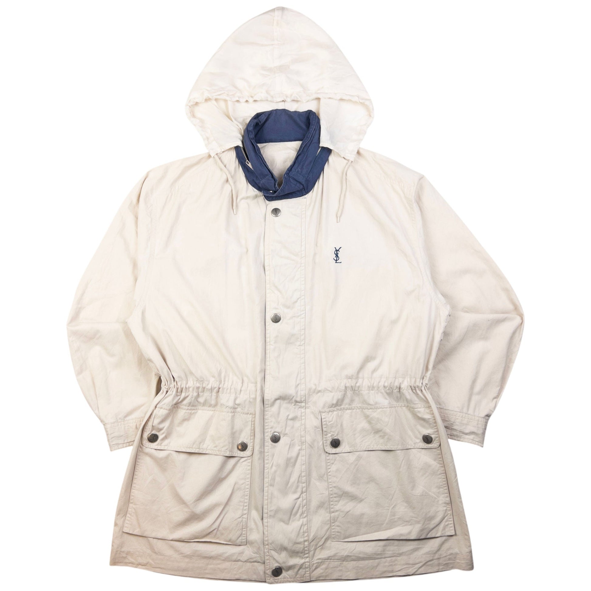 • Other info: Cream colour, embroidered logo, embossed fastenings, adjustable drawstring, hidden hood collar, general wear as seen