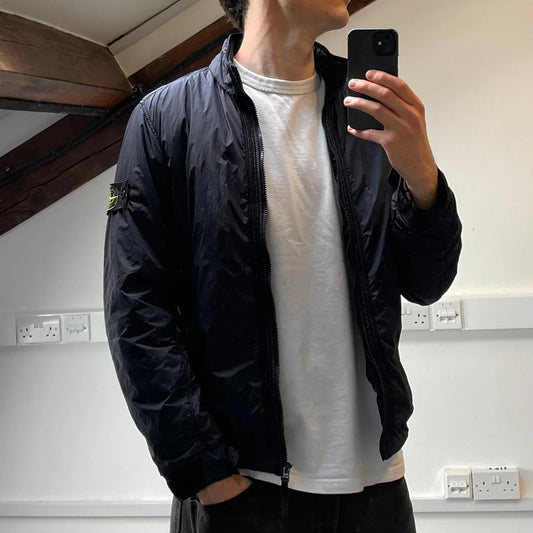 Stone Island Navy Padded Garment Dyed Crinkle Reps Jacket