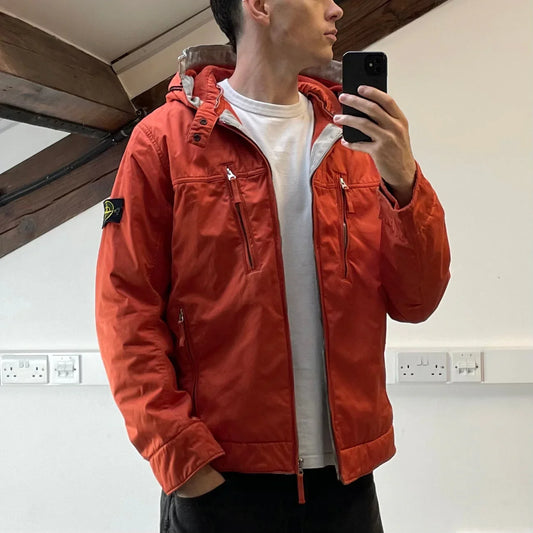 Stone Island Orange Raso Gommato Adjustable Hooded Jacket AW10
