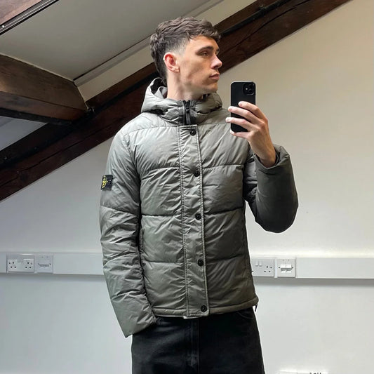 Fornecedor:ajpg_shopStone Island Grey Garment Dyed Crinkle Reps NY Down Hooded Puffer Jacket AW15