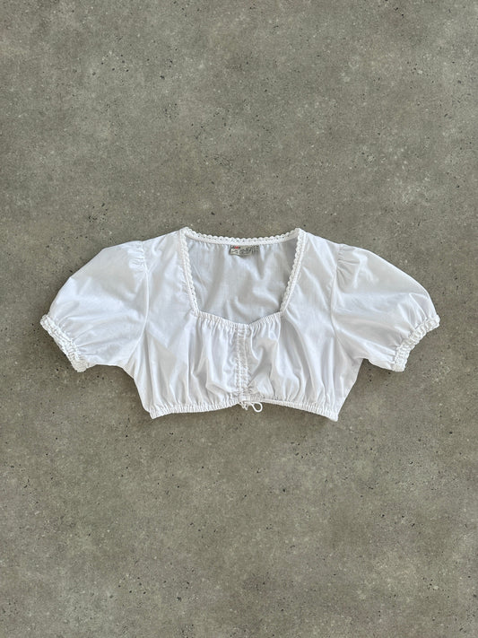 Vintage 2000s Ruched Trachten Cotton Crop Blouse Top - M