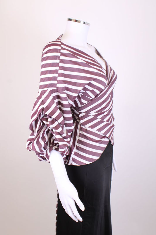 Johanna Ortiz S/S Stripe Wrap Blouse Burgundy/ White 10