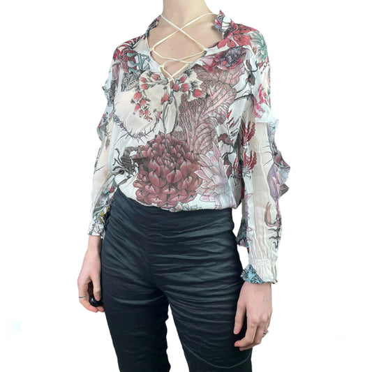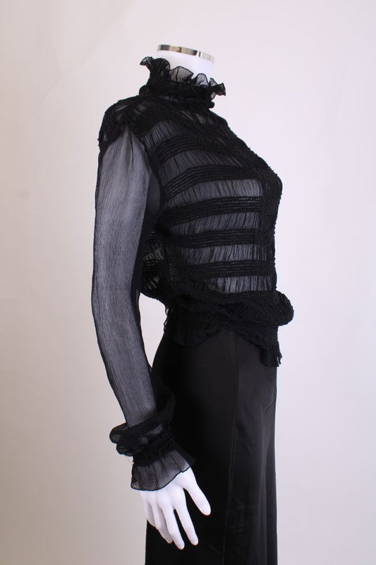 Alessandro Dell Acqua L/S Sheer Ruched Blouse Black M