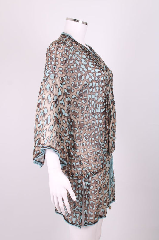 Zimmermann L/S Snake Print Belted Blouse Beige/ Blush S