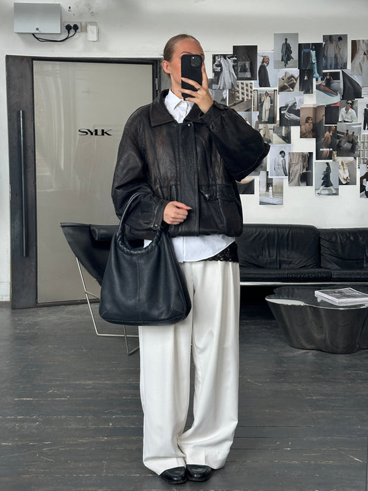 Vintage 1980s Aged Leather Bomber Jacket - XL