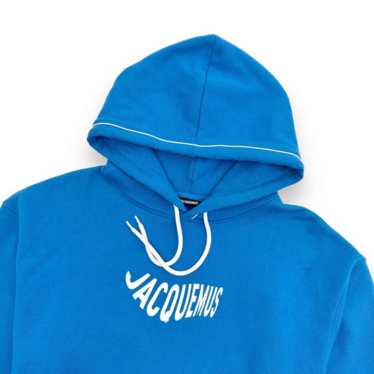 JACQUEMUS LOGO PRINT COTTON HOODIE BLUE L