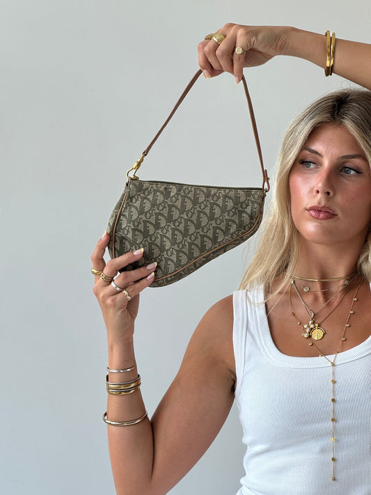 Vintage Christian Dior Monogram Khaki Saddle Bag (2001)