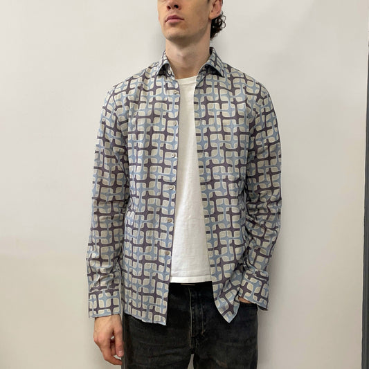 Prada Milano Grey & Blue 00s Geometric Interlink All-Over Print Shirt