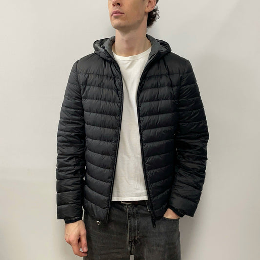 Prada Grey & Black 2019 Lightweight Goose Down Hooded Puffer Jacket