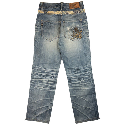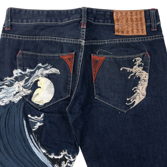 Vintage Big Train Embroidered Wave Japanese Denim Jeans Size W33