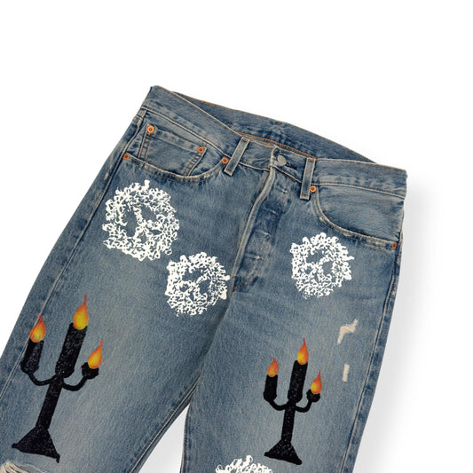DENIM TEARS X LEVIS COTTON WREATH DENIM JEANS BLACK / WHITE W34”