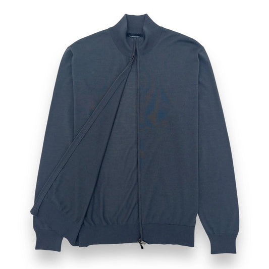 THOM SWEENEY MERINO WOOL ZIP-THROUGH MOCK NECK KNIT SLATE BLUE L