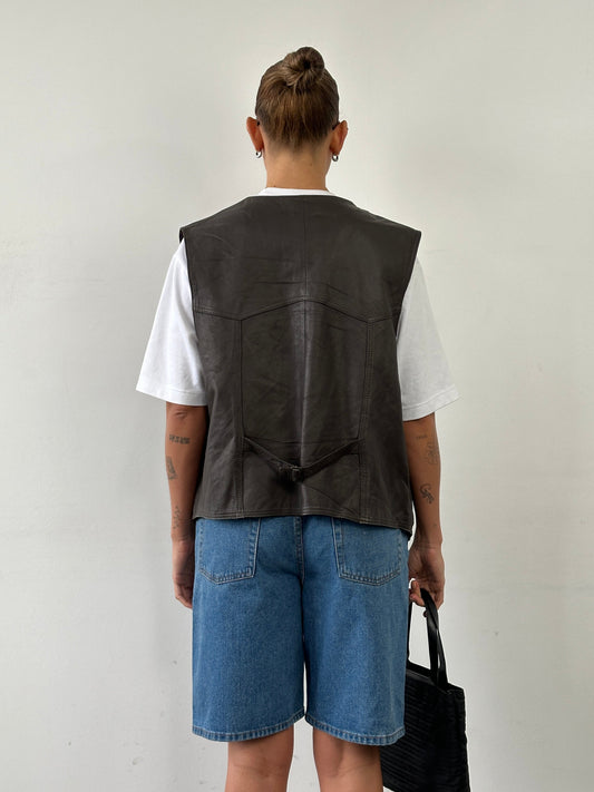 Vintage 1980s Aged Boxy Leather Jacket - XL