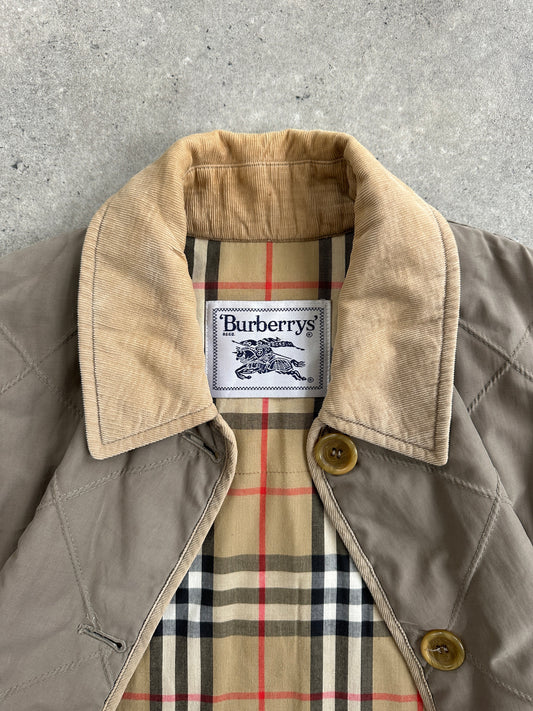 Burberry 1990s Quilted Nova Check Cord Collar Jacket – L