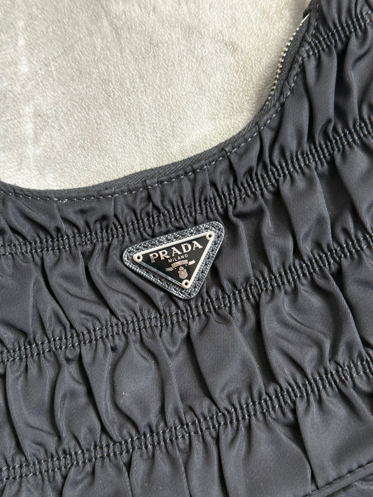 Prada Black Rouched Mini Badge Bag
