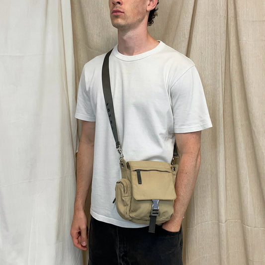 Prada Sport Beige 00s Nylon Crossbody Utility Canvas Spellout Satchel Bag