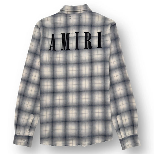 AMIRI FLANNEL LOGO APPLIQUÉ BRUSHED COTTON SHIRT BLUE / BLACK M