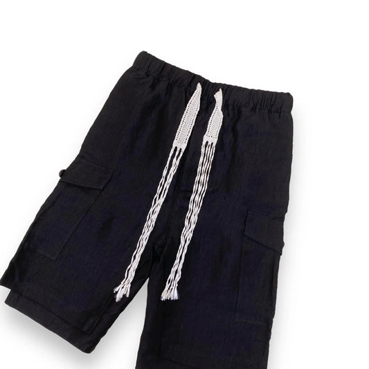 WALES BONNER WRINKLE LINEN XALAM SHORTS BLACK L