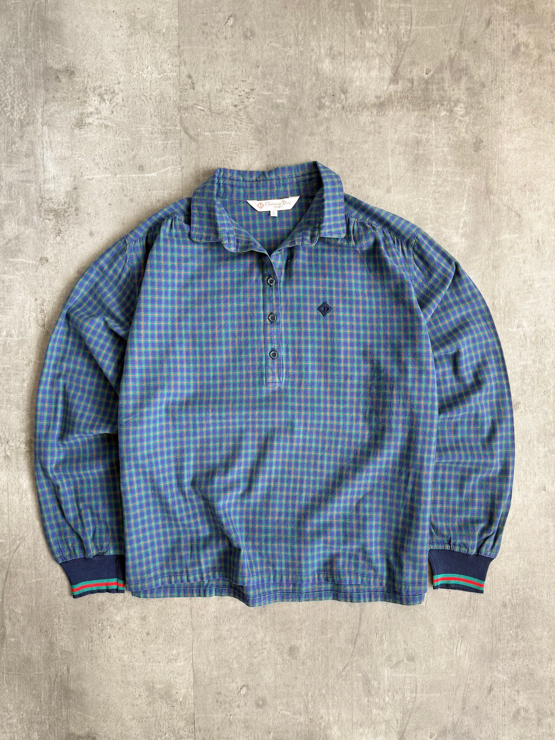 This 1980s Christian Dior long sleeve shirt offers a masterclass in understated refinement. Cut in a soft, lightweight cotton with a boxy silhouette, the shirt features a classic point collar, tonal buttons, and subtle tailoring through the shoulder and cuff. The washed blue hue delivers a breezy, sun-faded tone perfect for layered or standalone styling. A rare menswear staple from Dior’s transitional era, this piece bridges Parisian minimalism and everyday luxury—ideal for collectors of archival designer shirting and lovers of elegant silhouettes with vintage pedigree.