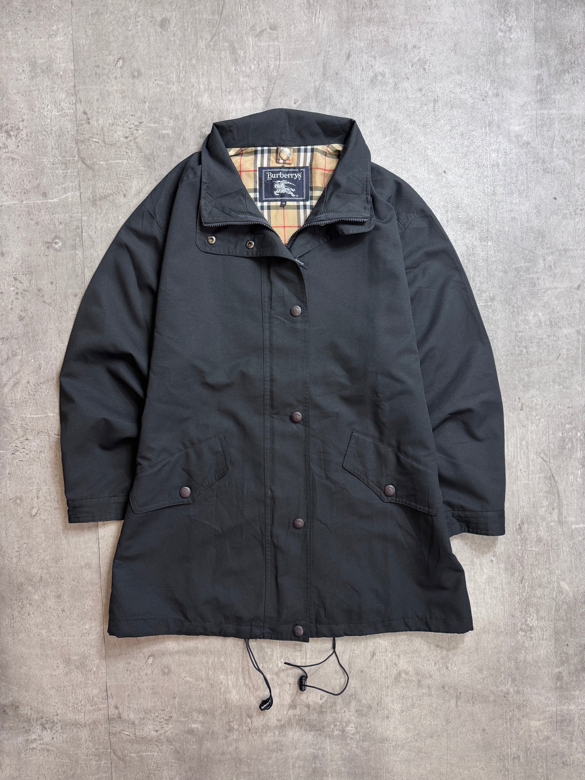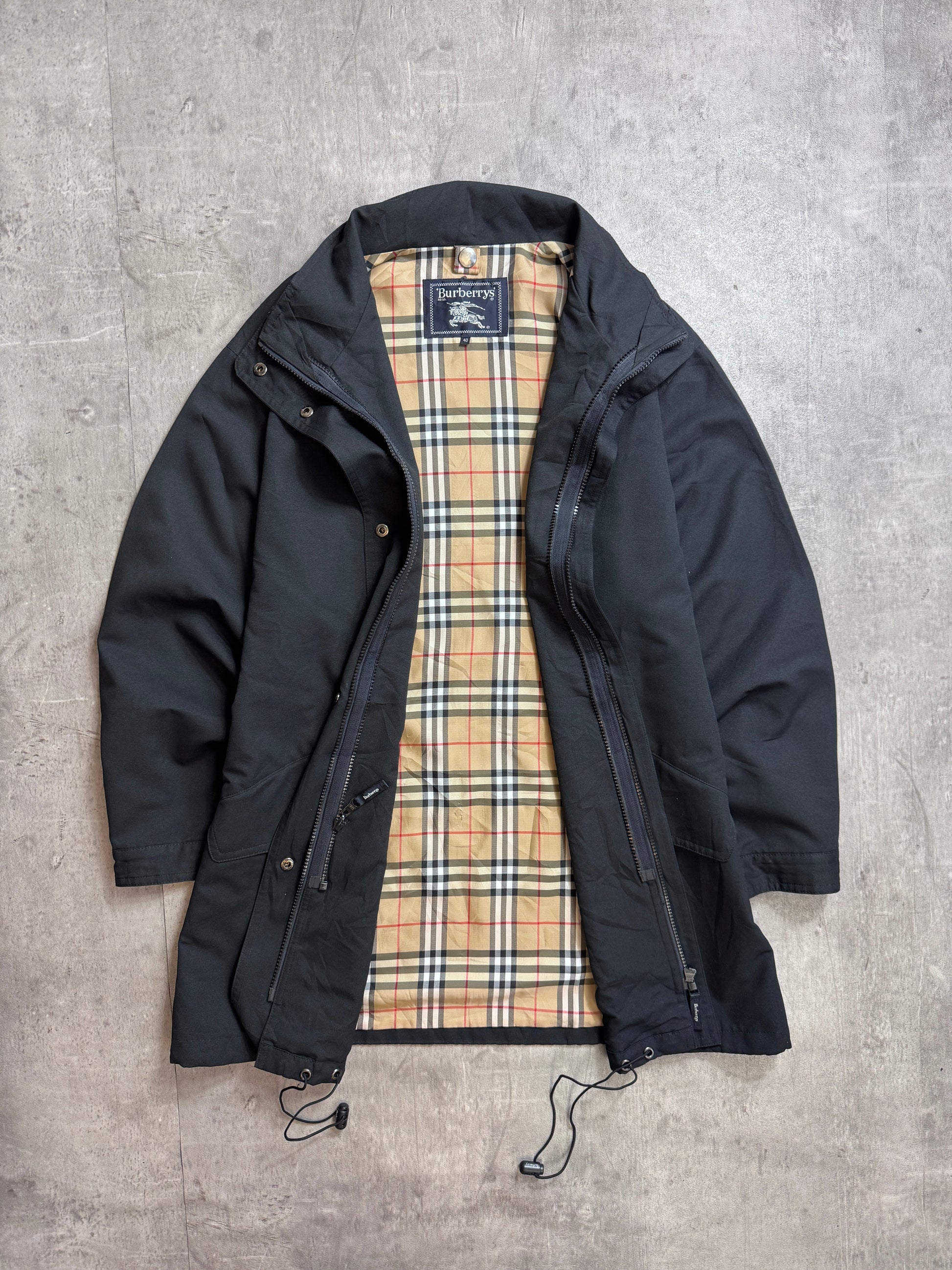 1990's Burberry Black Lightweight Nova Check M65 Tech Parka