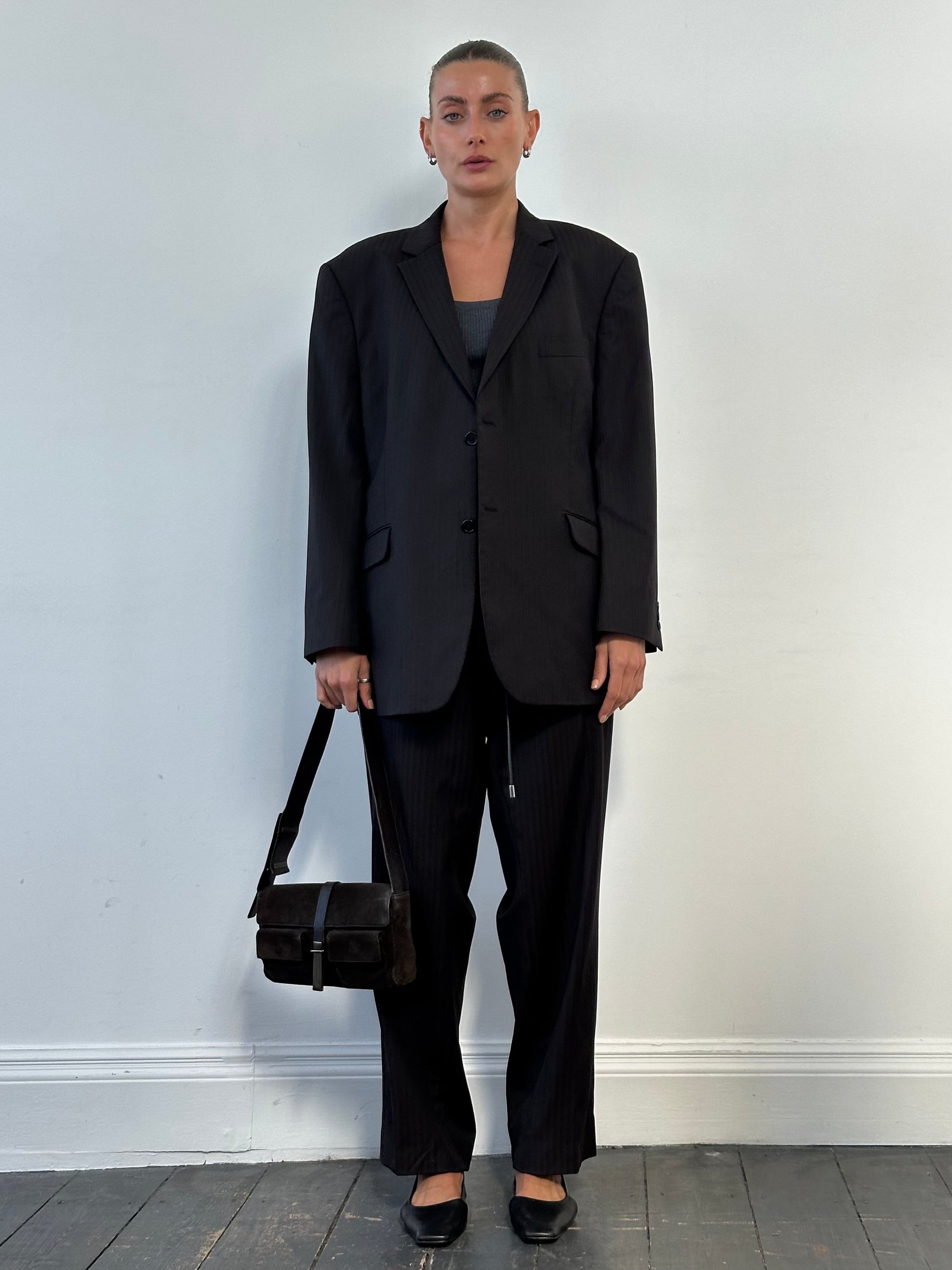 Measurements: blazer chest 46”, sleeve 24”, length 31”, shoulder 19”