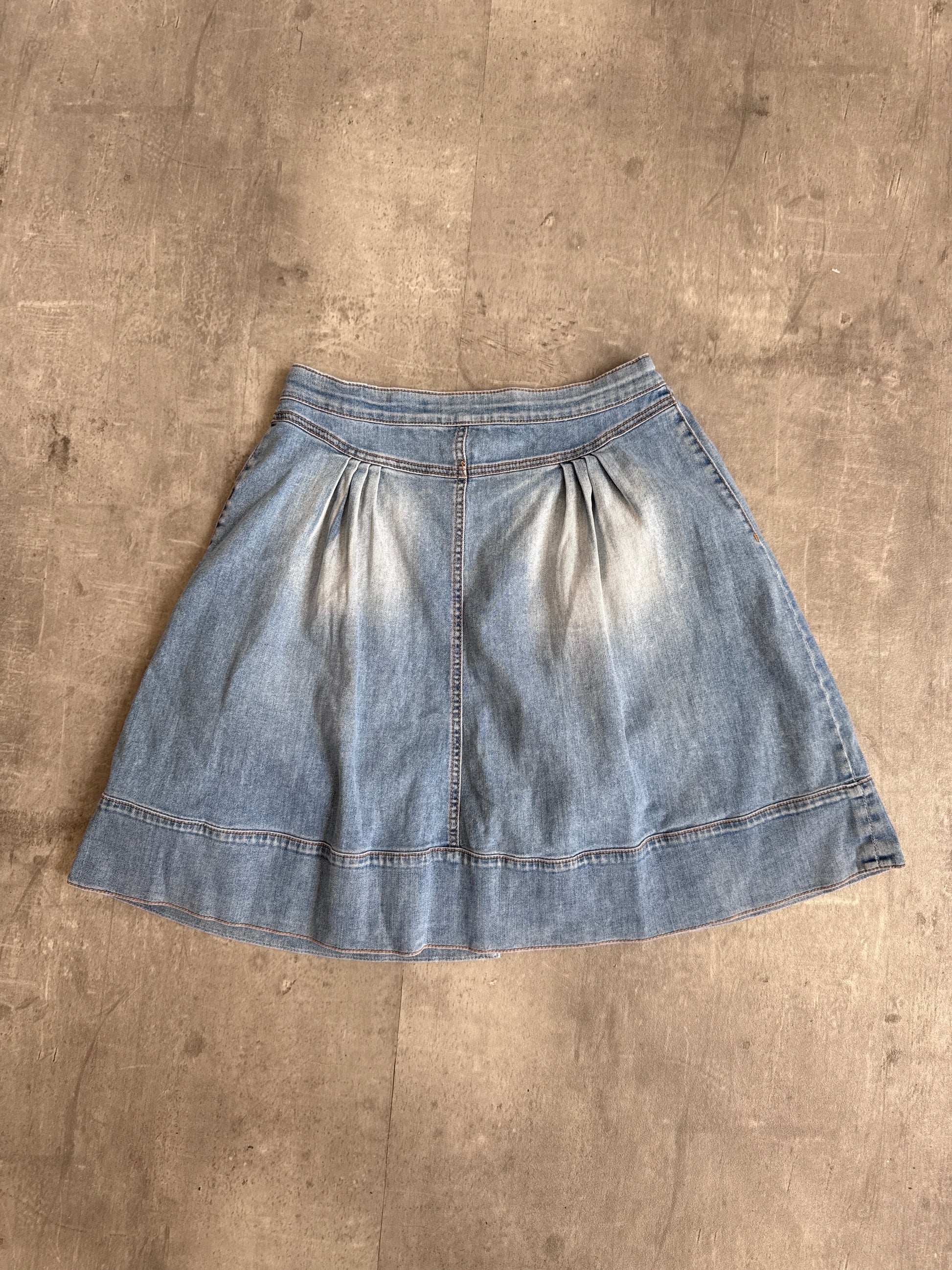 Cavalli Washed Denim Asymettric Closure Midi Skirt