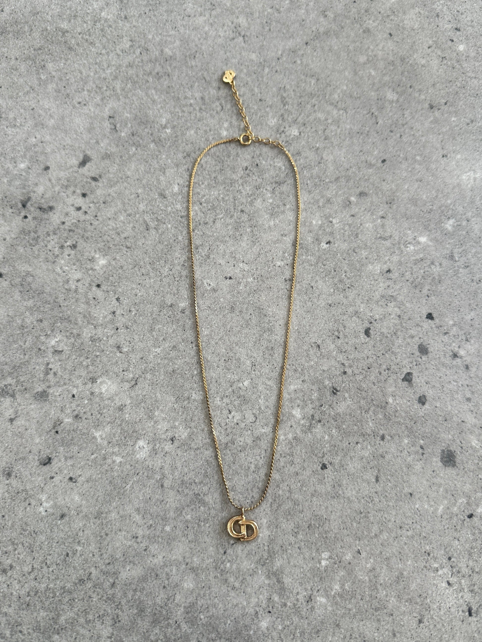 Christian Dior 1990s 16” Gold Plated CD Logo Pendant Necklace