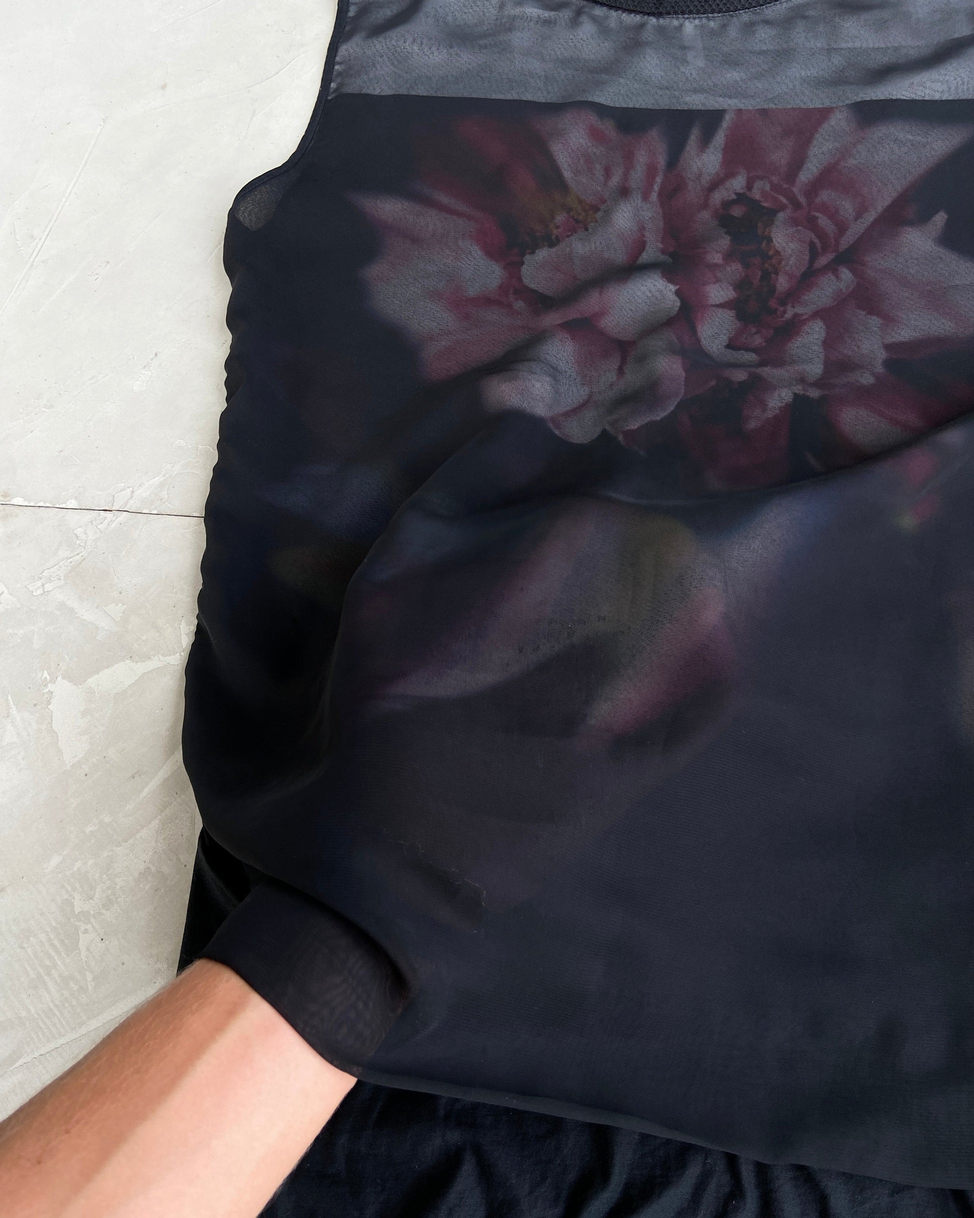 Featuring flower graphic on the under layer and a mesh layering over the top.