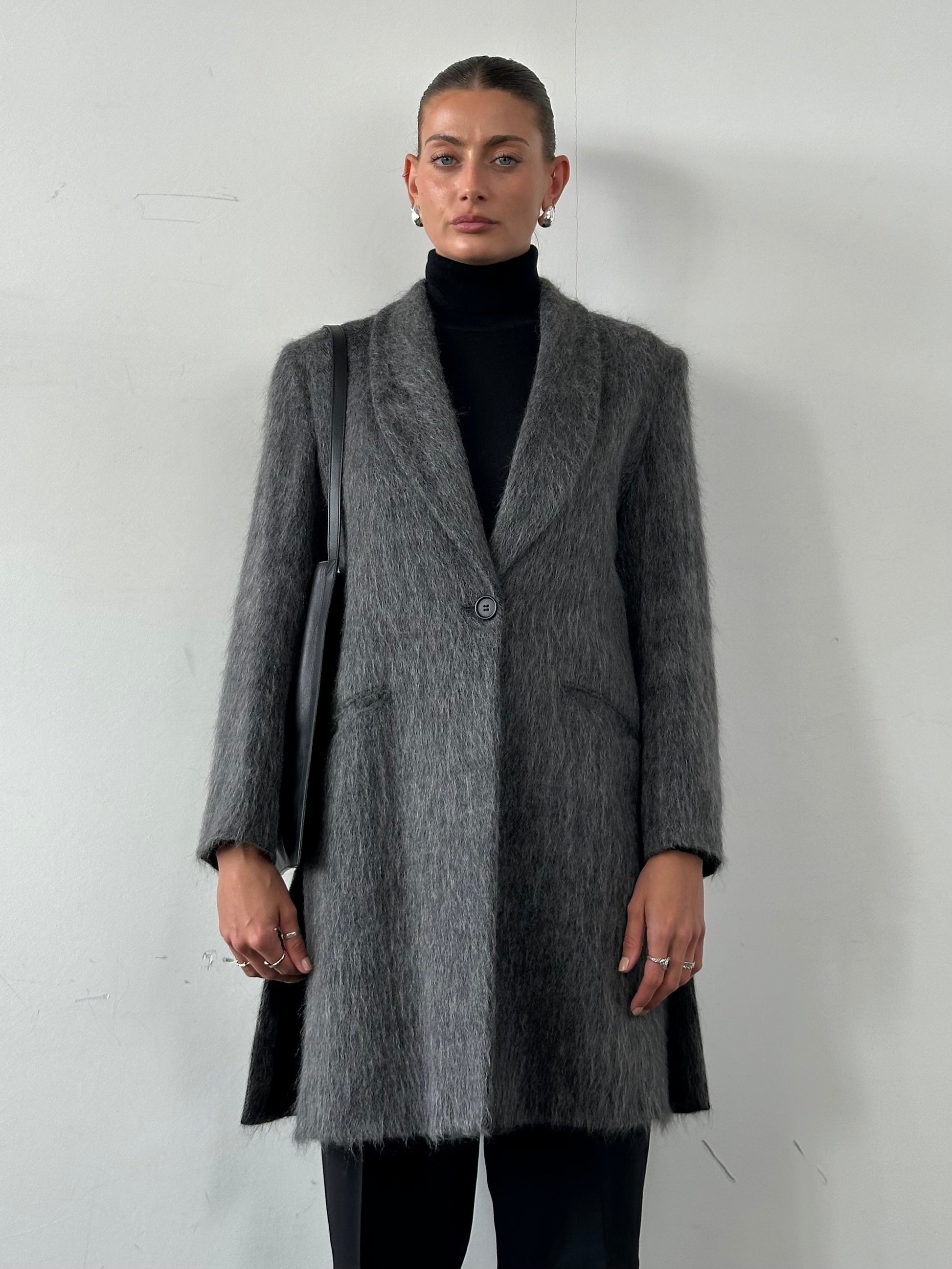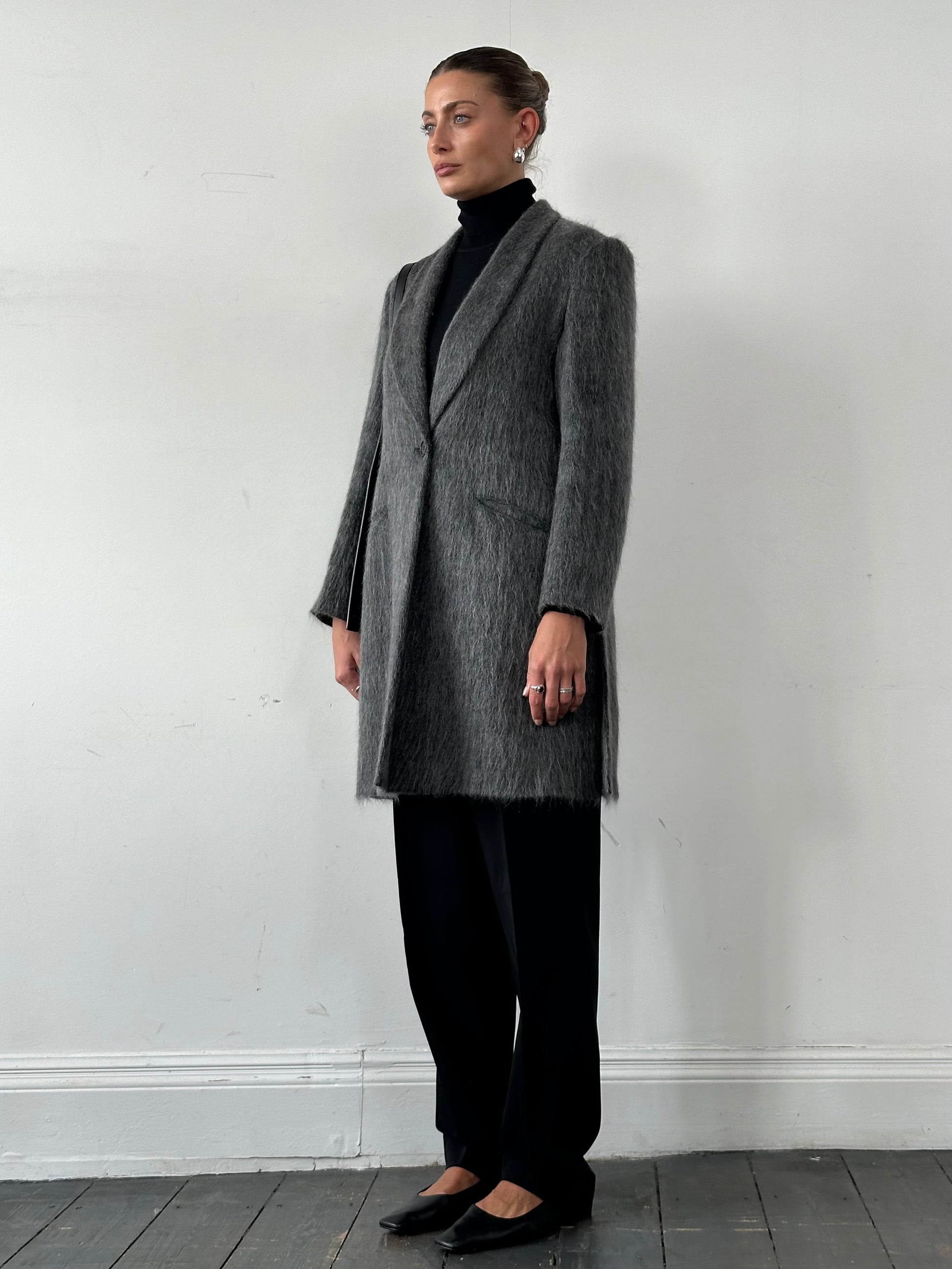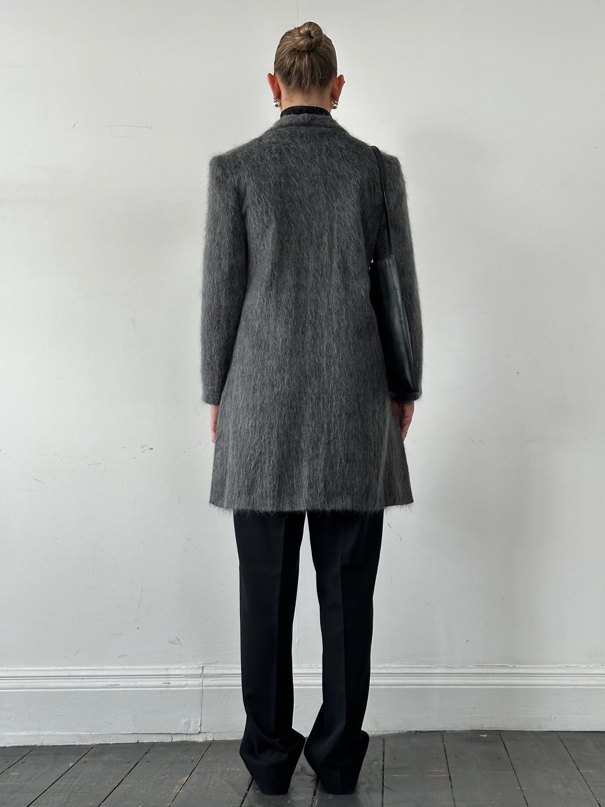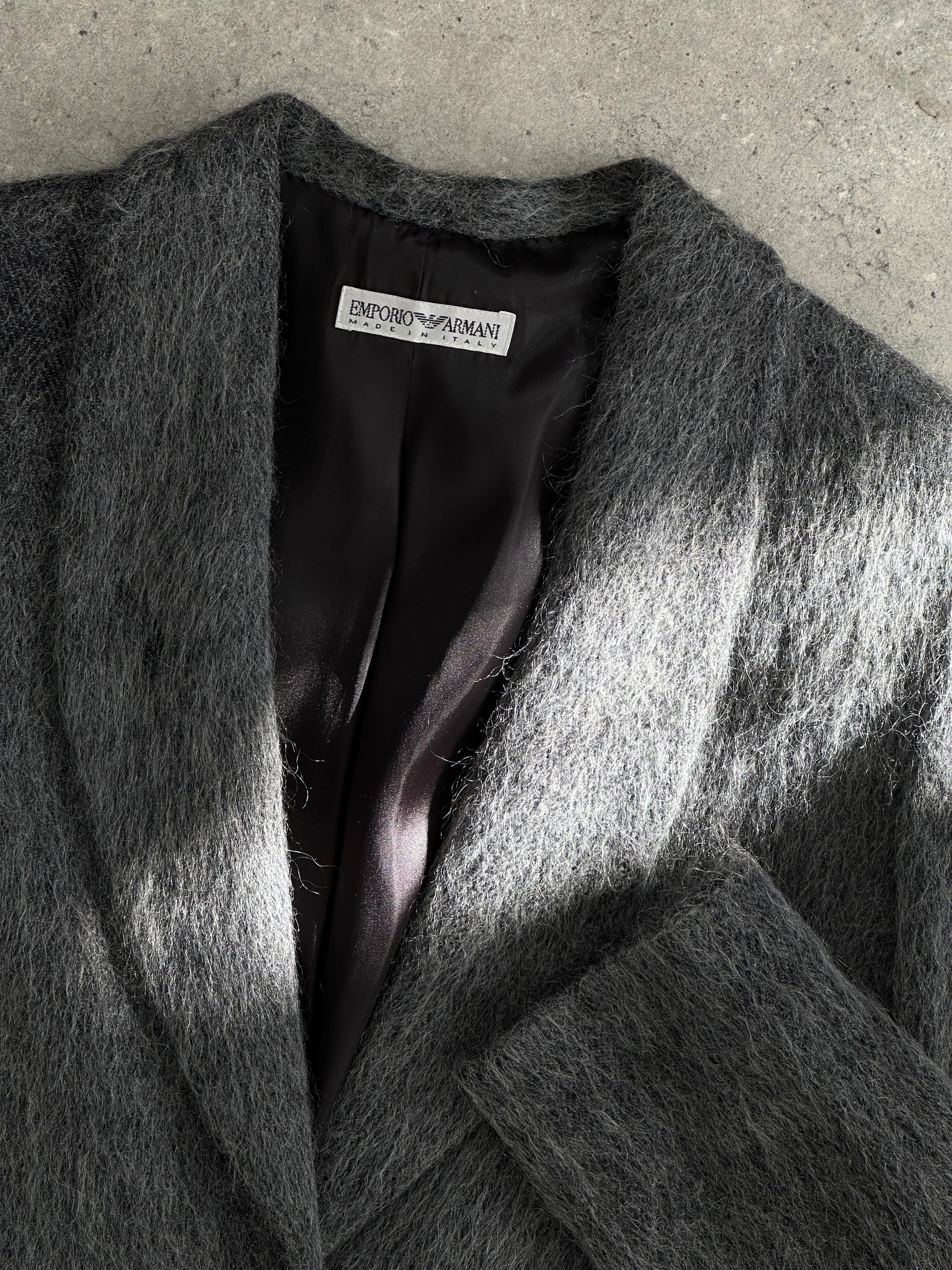 Emporio Armani Fuzzy Wool Mohair Single Breasted Coat - M
