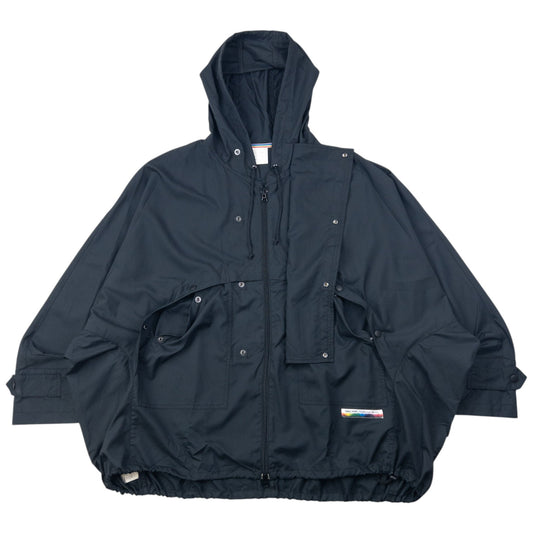 Very rare Final Home 2000’s Black nylon reversible hooded vest, unique hex patterned ripstop material on the front with Final Home survival logo patch and large zip pockets, features buttons that can be used to cinch the fit of the vest inwards making it more fitted, reverses into a jet black smooth nylon side with a small Final Home logo tab and hand pockets.