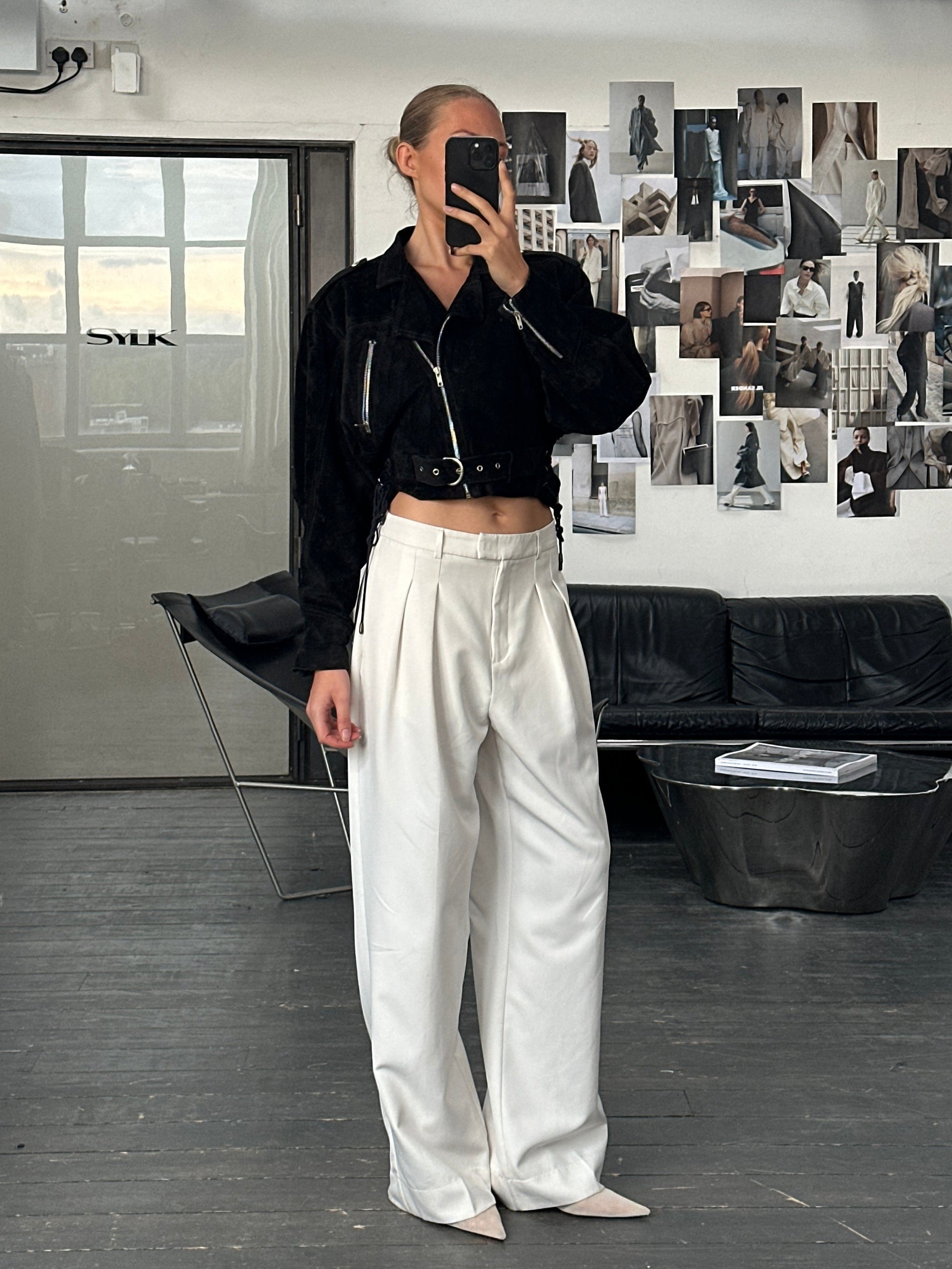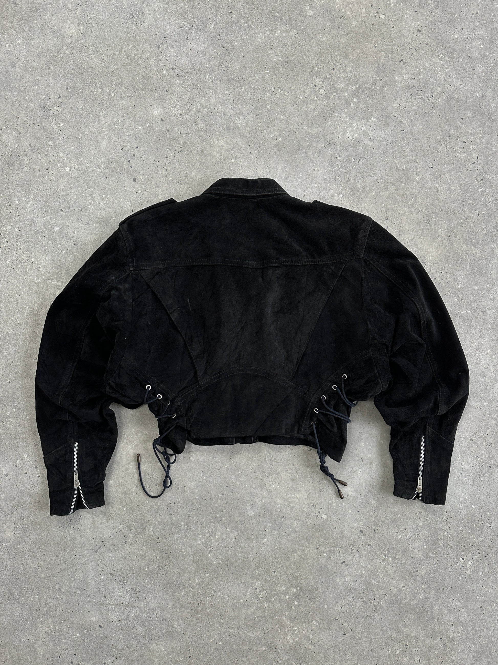 ~ Cropped black suede biker jacket
