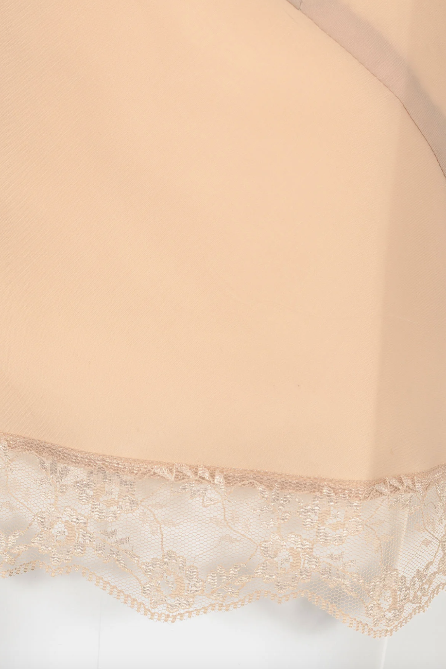 Light beige bias-cut skirt with lace trim and side-zip fastening.