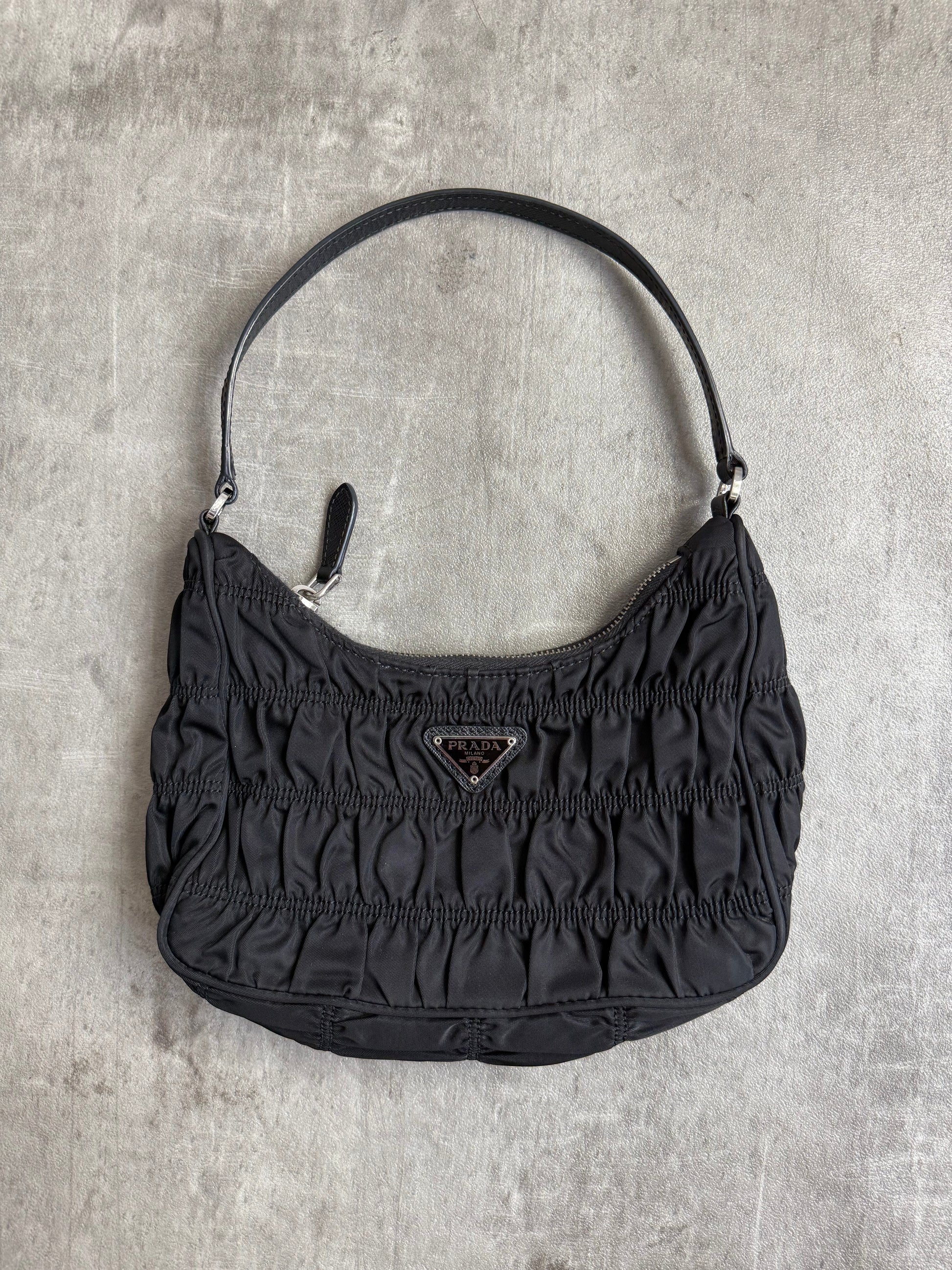 Prada Black Rouched Mini Badge Bag