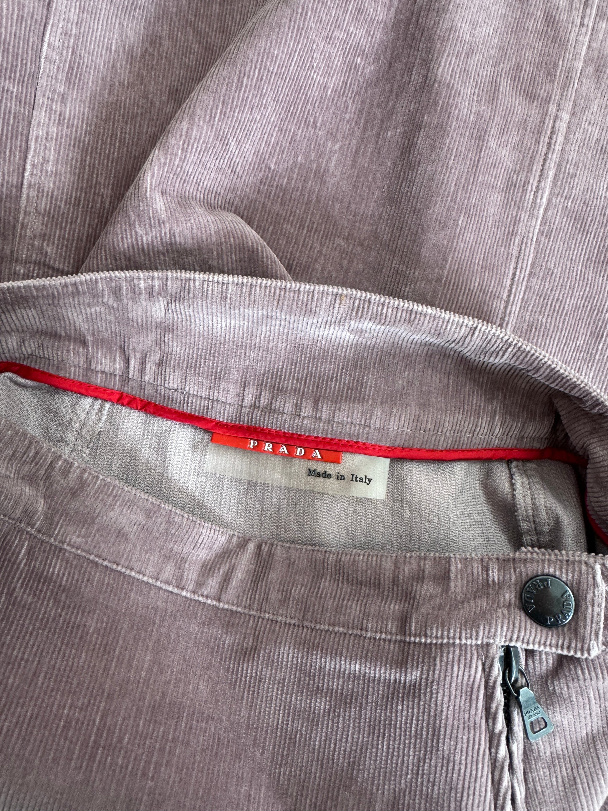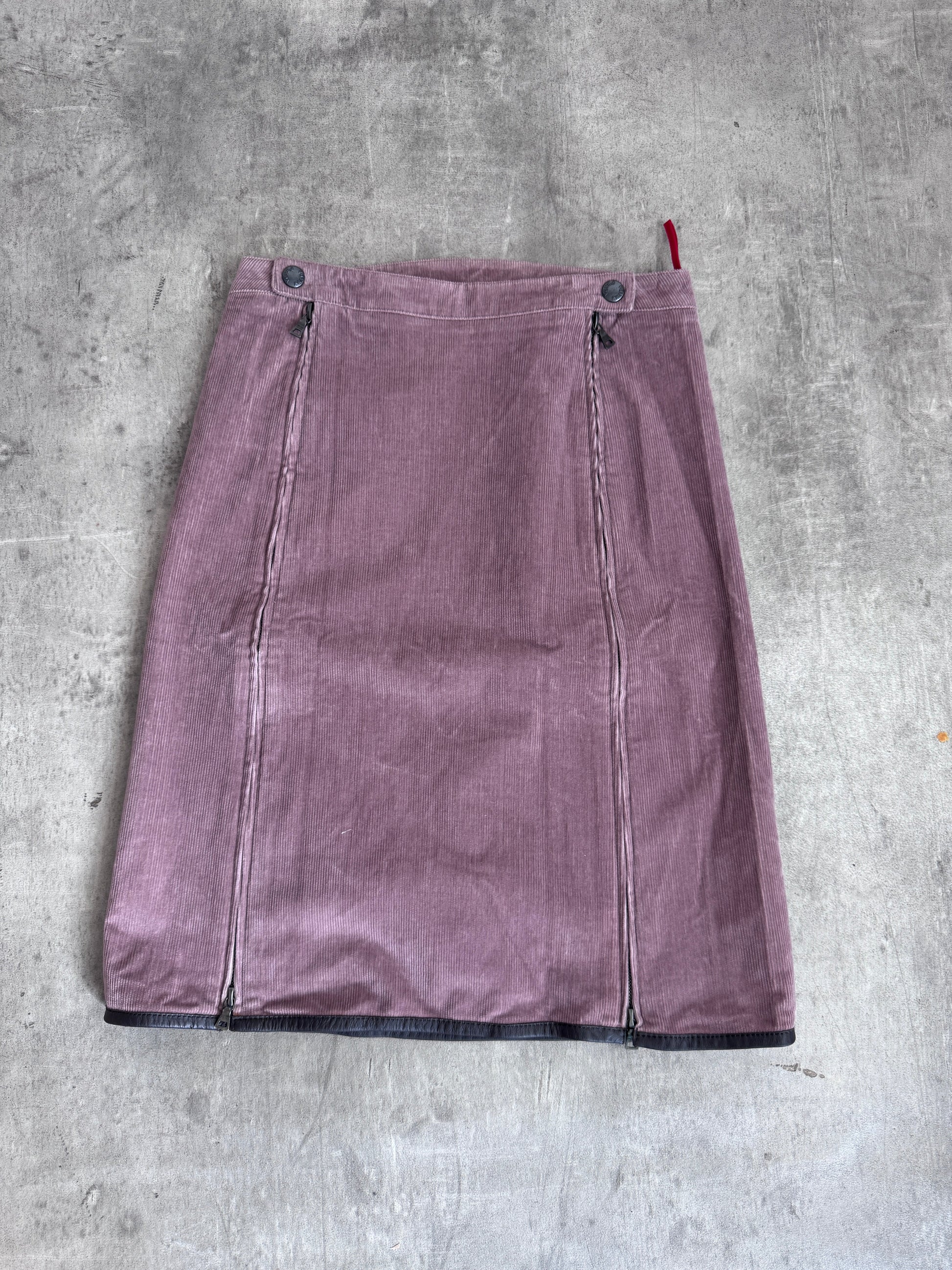 Prada Dusty Pink Corduroy Zip Detail Midi Skirt