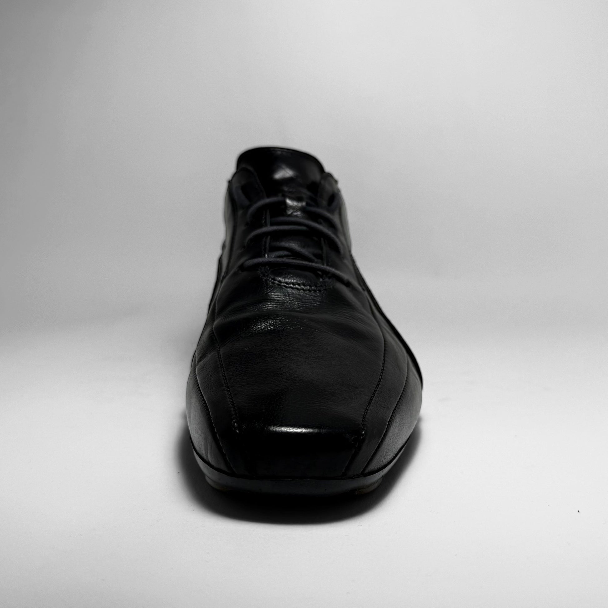 Smooth minimalist leather upper, subtle perforations and beautiful stitching details throughout, translucent pods on the outsole and a streamlined silhouette. Made in Italy.