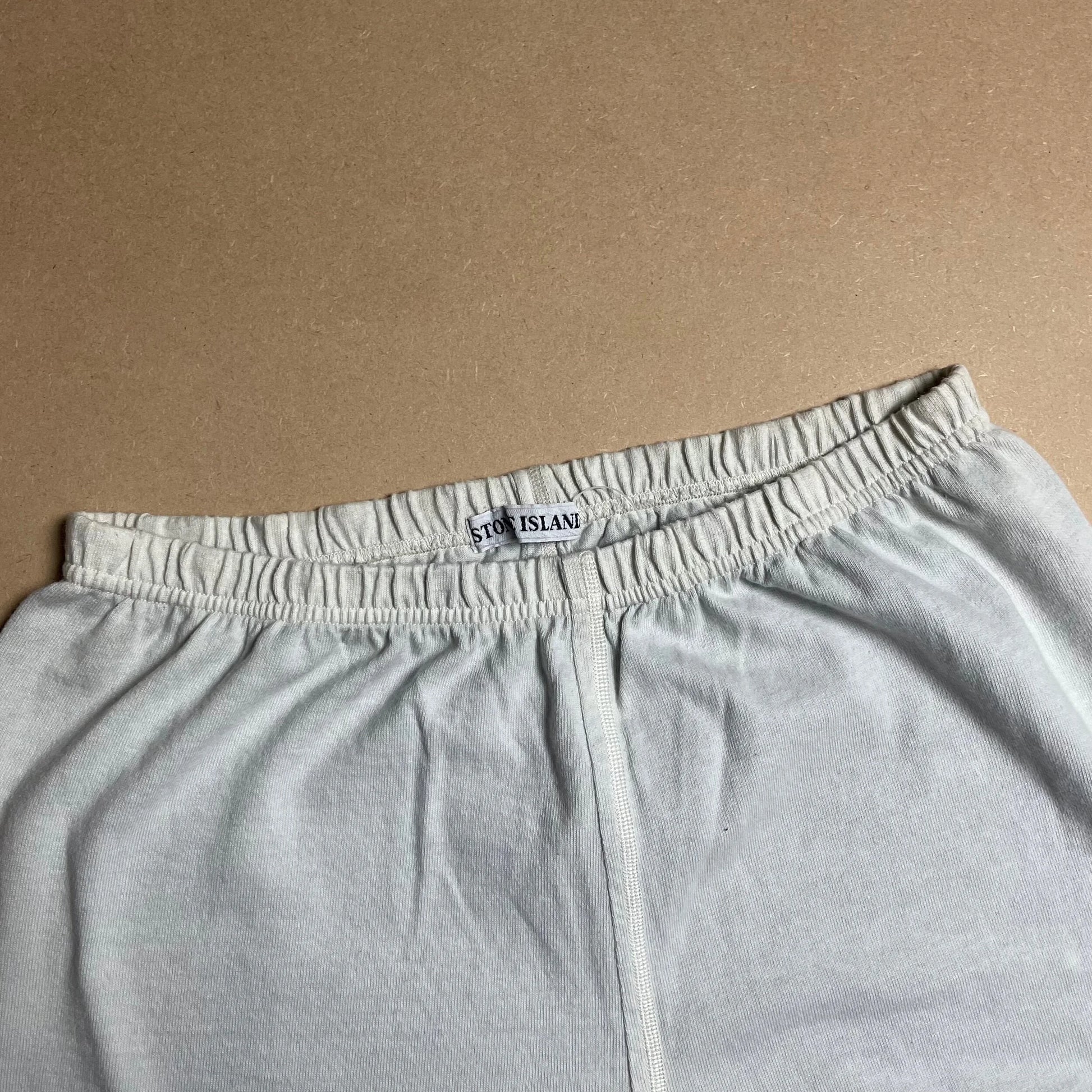 Designed by Massimo Osti. Early iteration of reflective typing later used in the Life Safer ranges. Single back patch pocket. Ultra elastic waistband and ankle cuffs. Light brushed cotton textures. Complete with reflective stencil spell out.