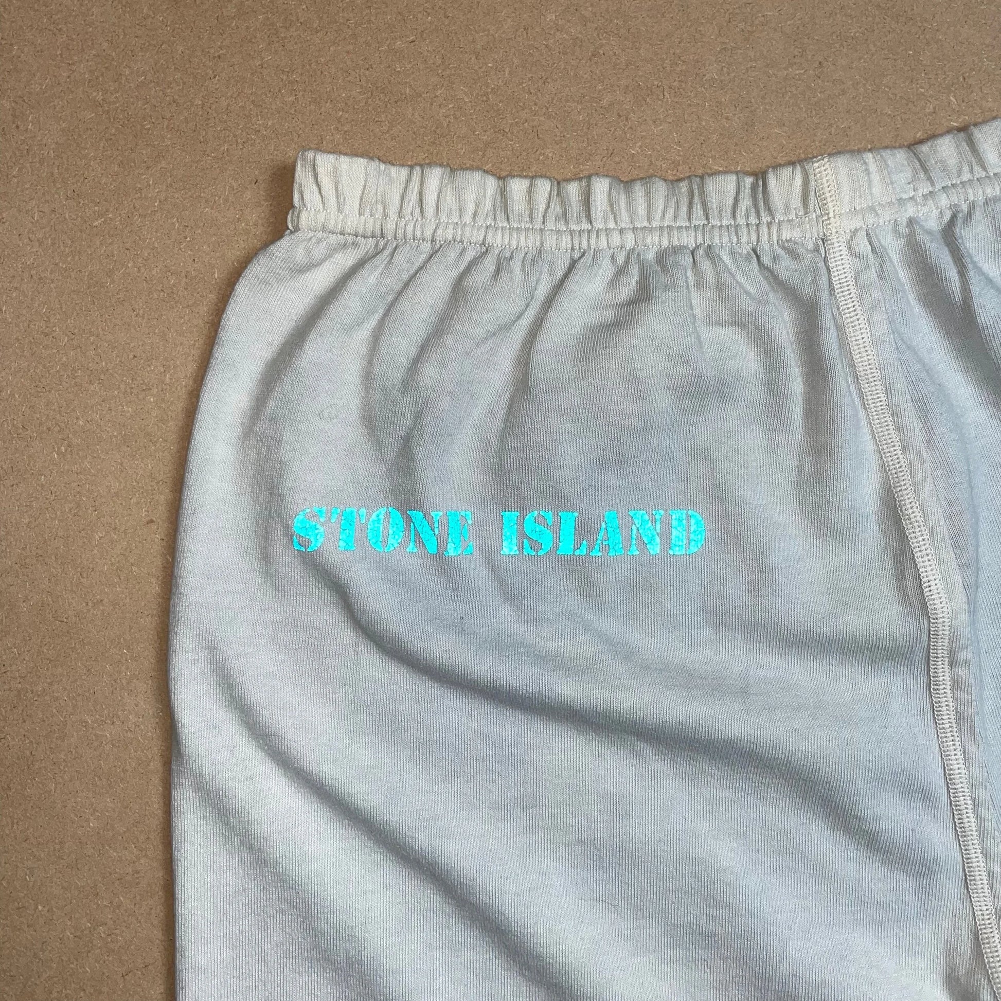 S/S 1989 Egg Shell Blue Light Cotton Stretch Reflective Spell Out Sweatpants
