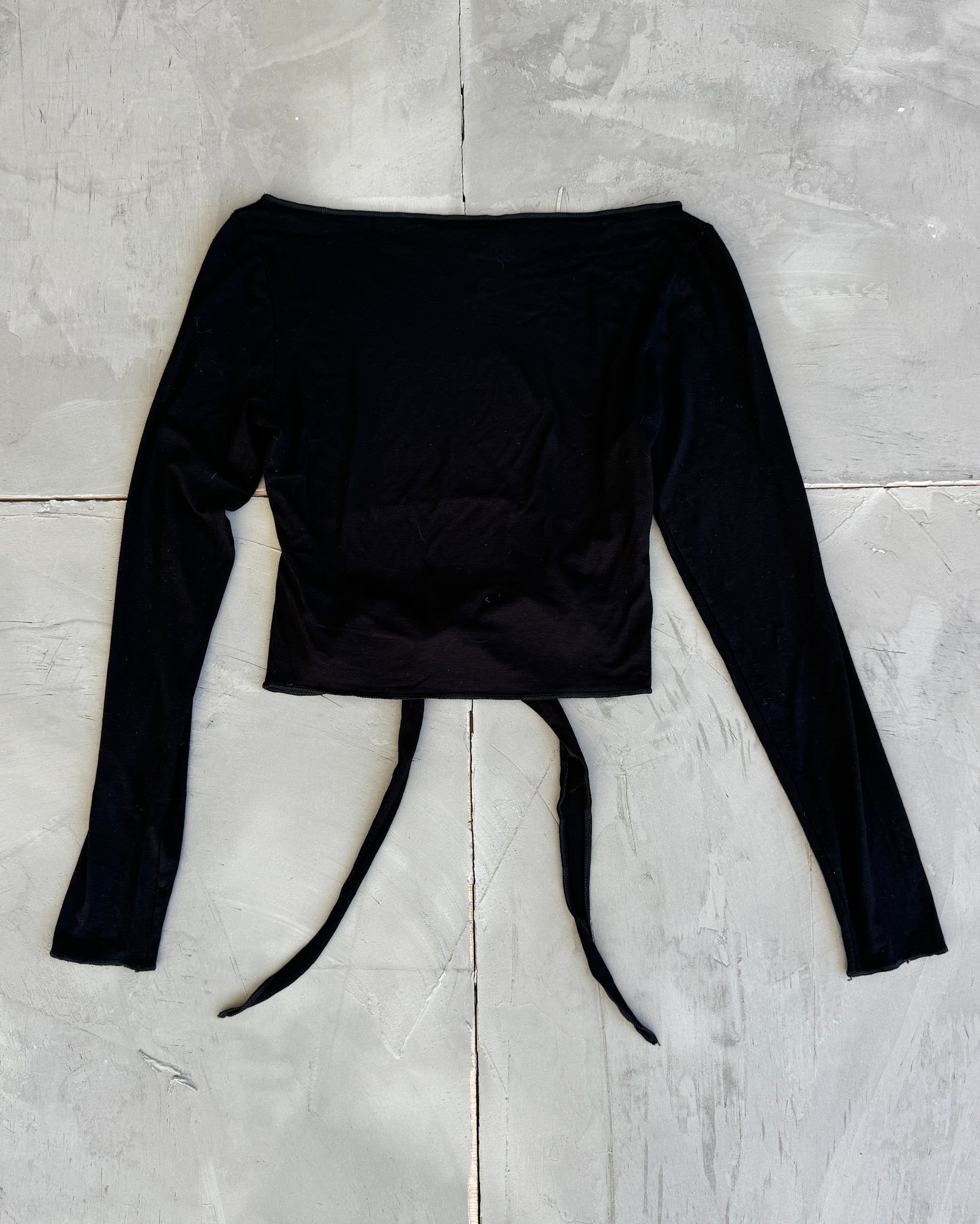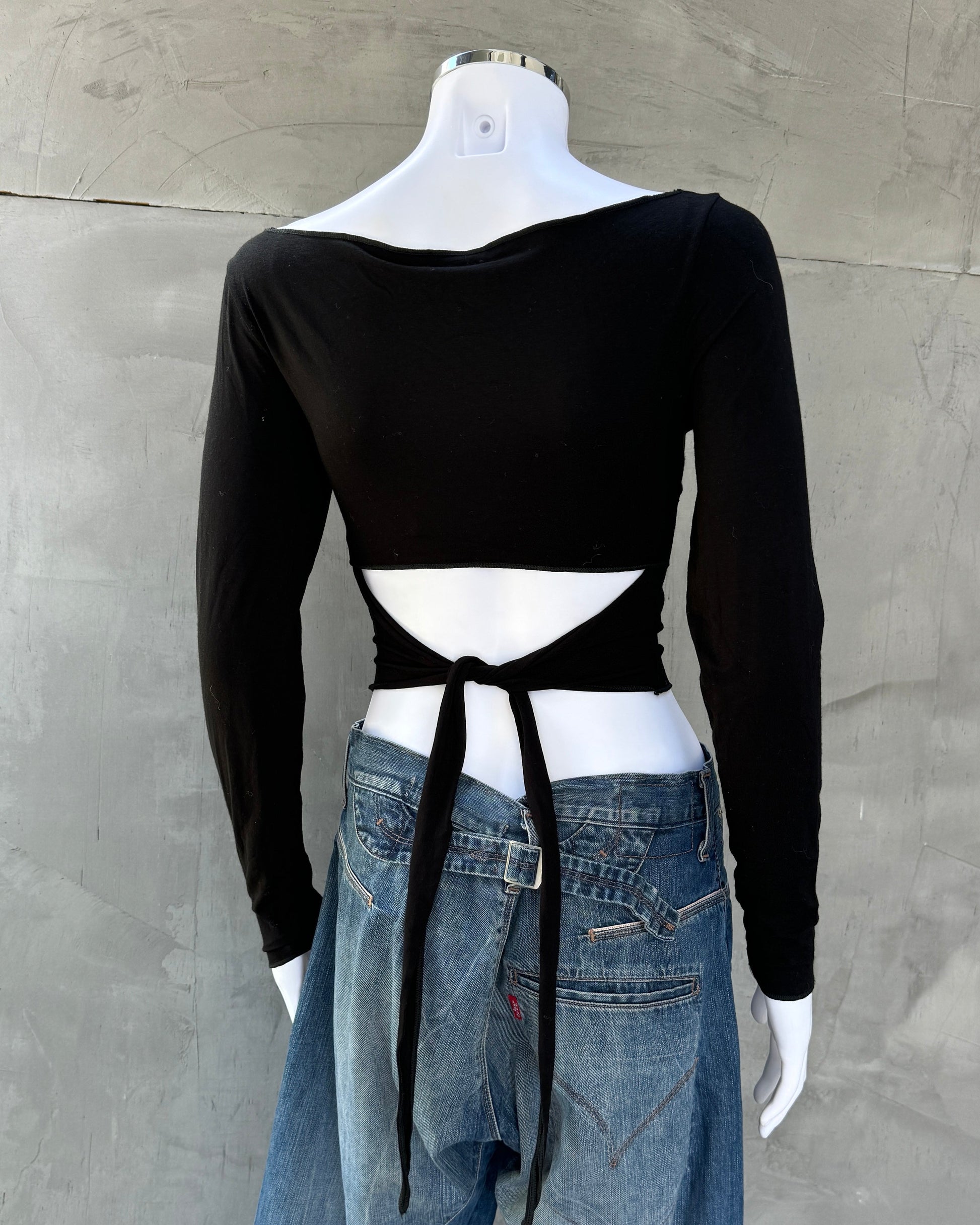 Stretch knit backless top with subtle ribbed texture and minimalist silhouette.