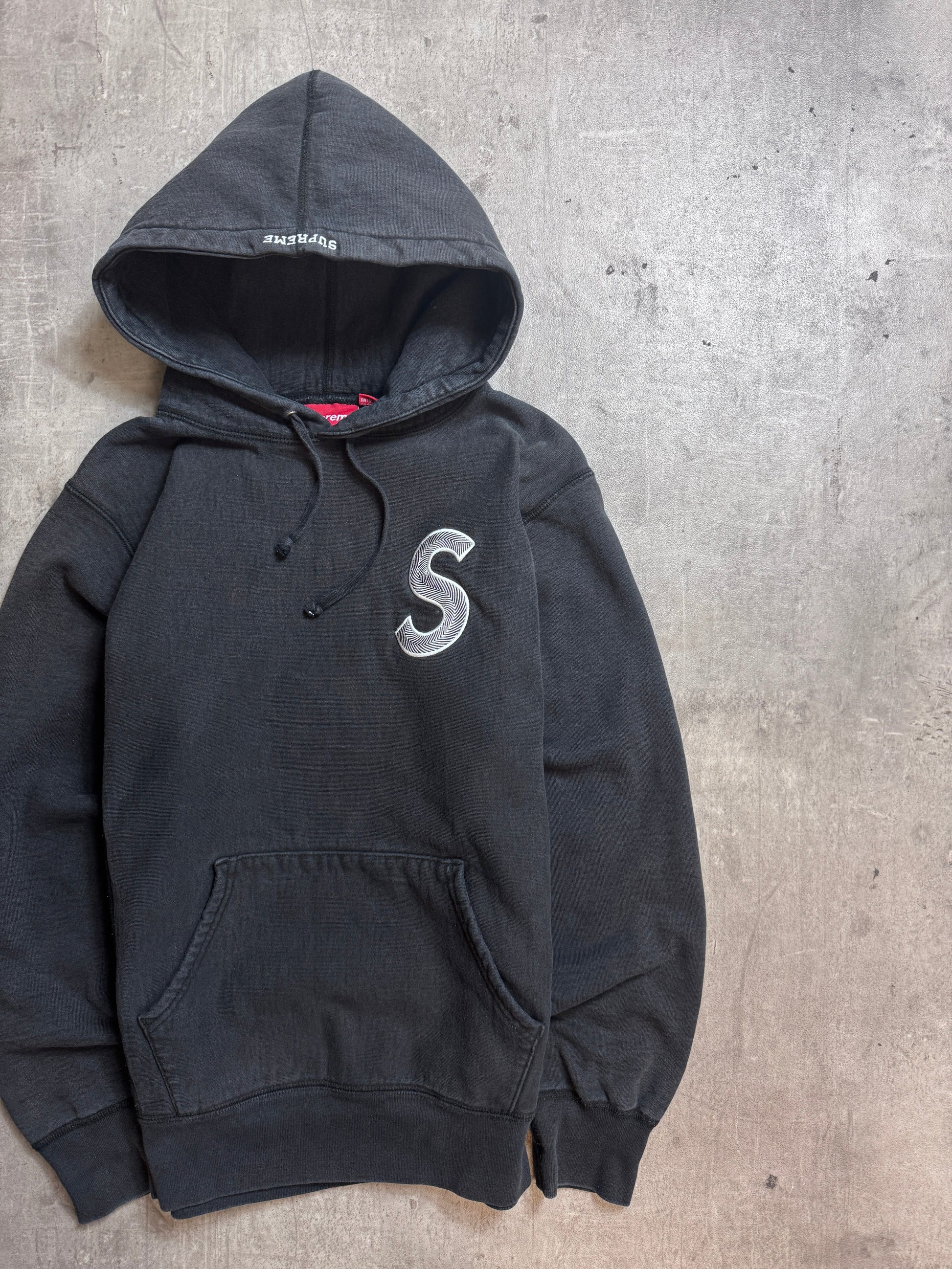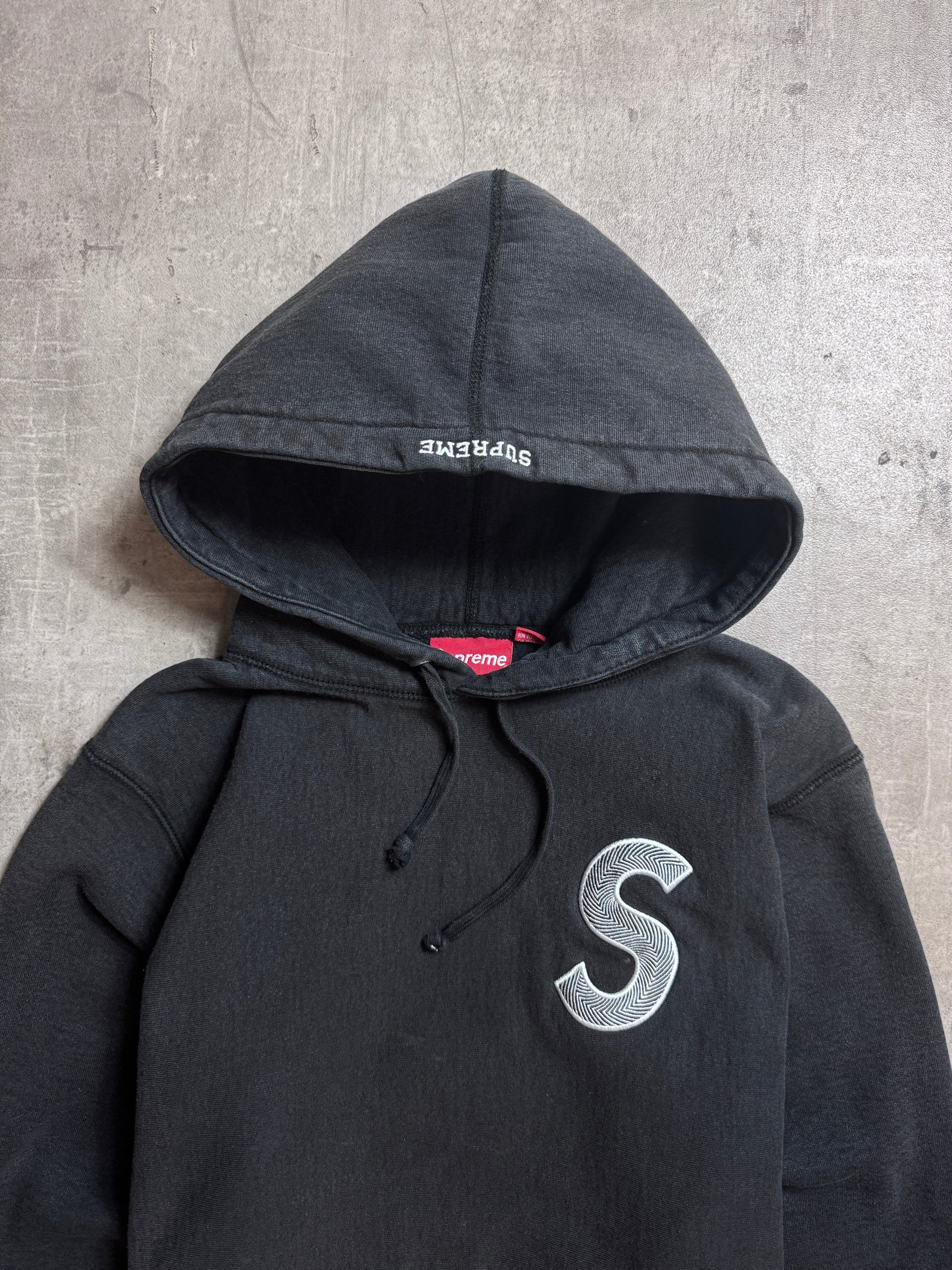 Supreme Embroidered S Logo Black Cotton Hoodie