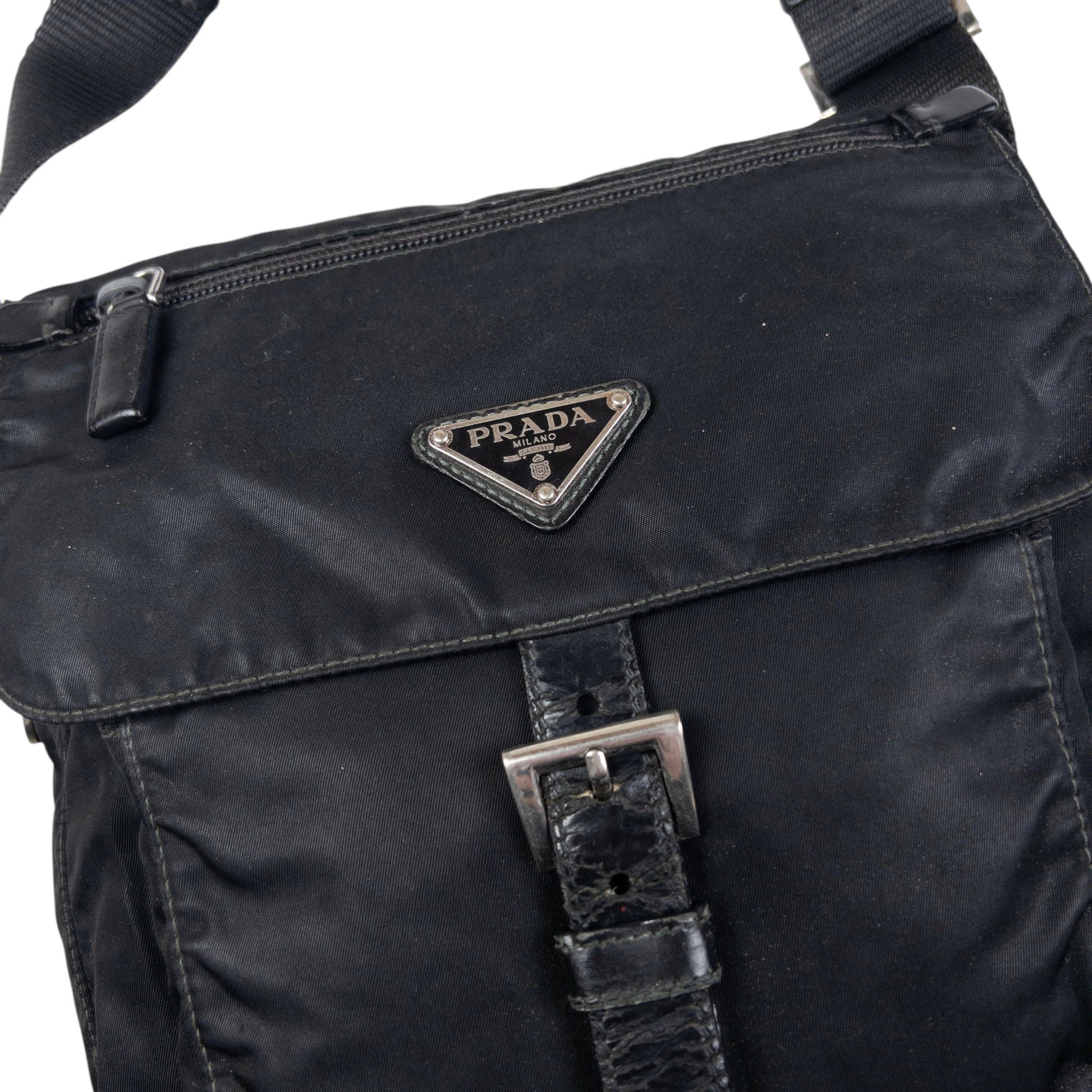 • Other info: Black colour, adjustable strap, prada symbole plate detail, damaged pocket zip and general wear as seen