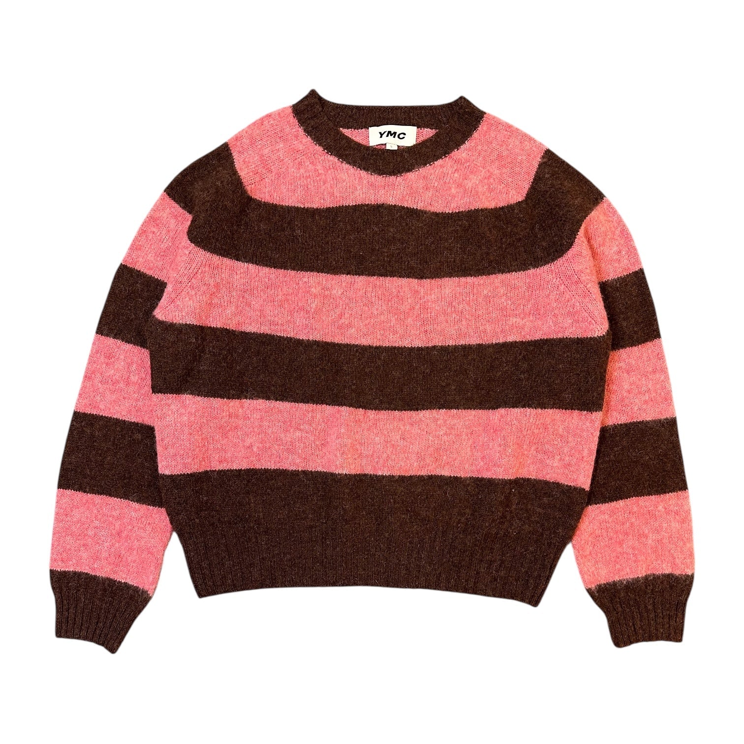 YMC You Must Create Pink Suedehead Lambswool Jumper. Raglan sleeves, relaxed look in a two tone brown and pink. RRP £235