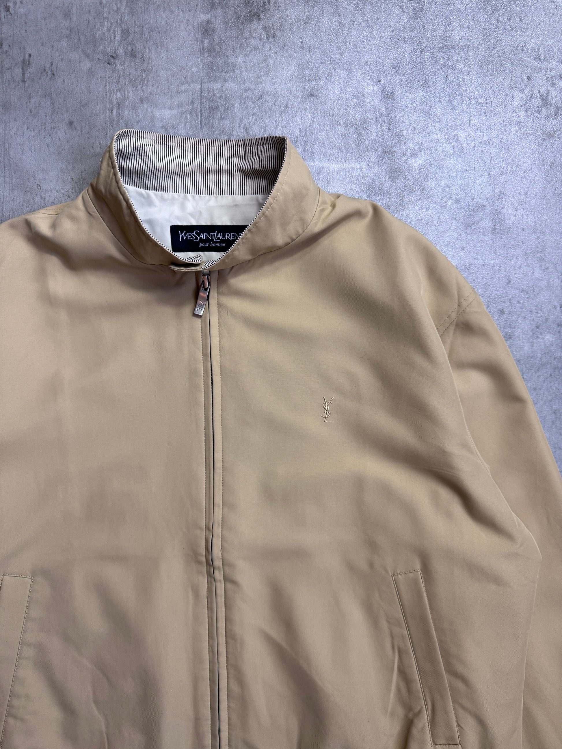 YSL Beige Lightweight Moto Collar Blouson
