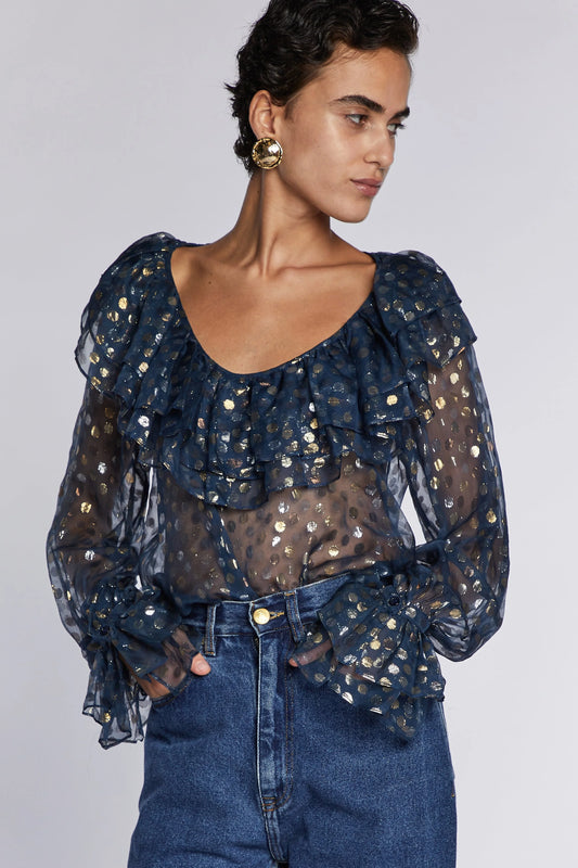 Saint Laurent Rive Gauche Polka Dot Chiffon Blouse 1970s
